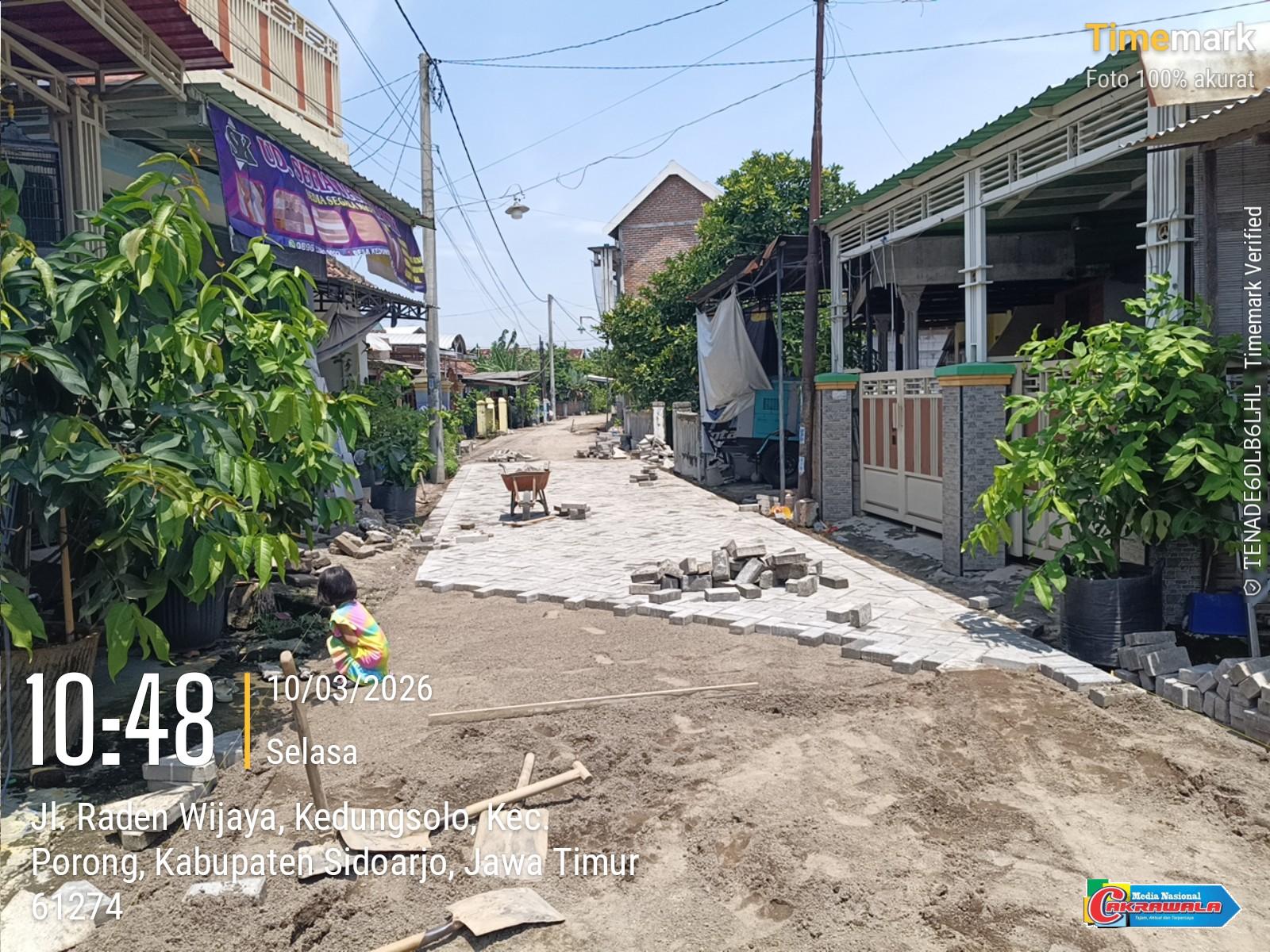 Sidoarjo,MN Cakrawala-Pemerintah Desa Kedungsolo kecamatan Porong merealisasikan pembangunan peningkatan mutu jalan lingkungan pemukiman yang dikerjakan swakelola.