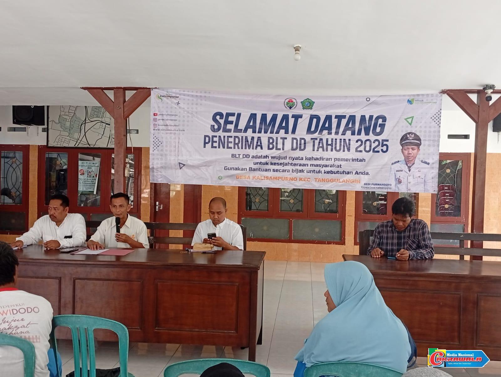 Dalam sambutanya Kepala Desa Kalisampurno Dedy Purwandoyo menyampaikan, sebagai penerima BLT-DD ini sudah sesuai dengan mekanisme dan kategori yang di harapkan dari pemerintah pusat sehingga data penetapan warga penerima Bantuan Langsung Tunai (BLT-DD) ini telah diseleksi dan sudah diverifikasi data dari Rt/Rw yang masuk sesuai dengan ketentuan, sebanyak 35 KPM mendapatkan bantuan langsung tunai sebesar Rp. 300.000 setiap bulannya dari bulan juli, Agustus, September. Total yang disalurkan selama tiga bulan Rp. 900.000,- (Sembilan Ratus Ribu Rupiah) secara tunai bagi penerima.