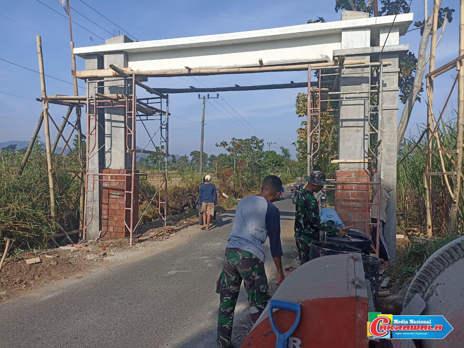 Bondowoso, MNCakrawala– Pengerjaan gapura terus di lakukan oleh anggota Satgas TMMD ke 116 kodim 0822 Bondowoso di mana gapura tersebut tepat berada di desa Pecalongan yang berbatasan dengan desa Kerang Kecamatan Sukosari, Jum’at (2/6).