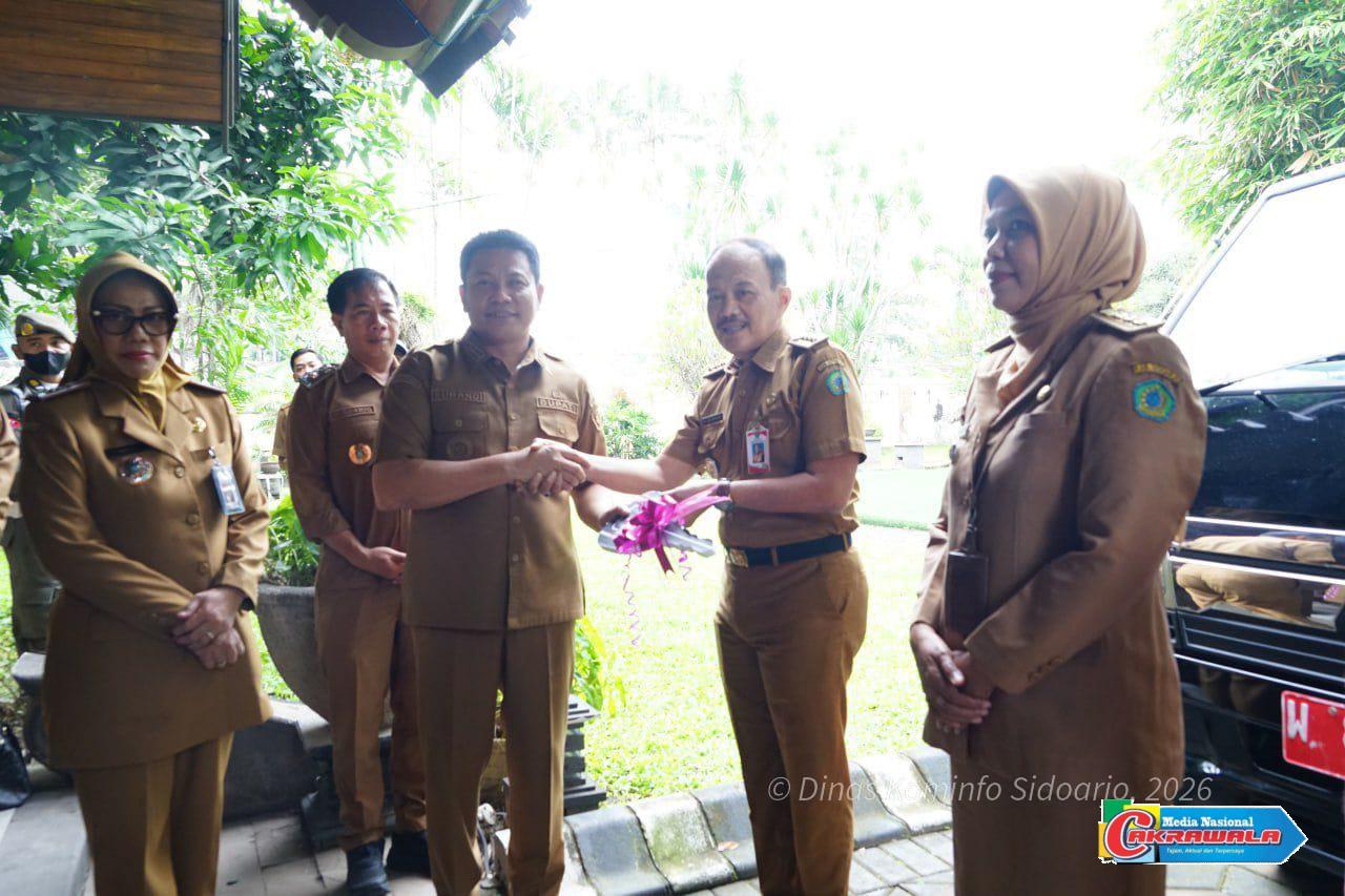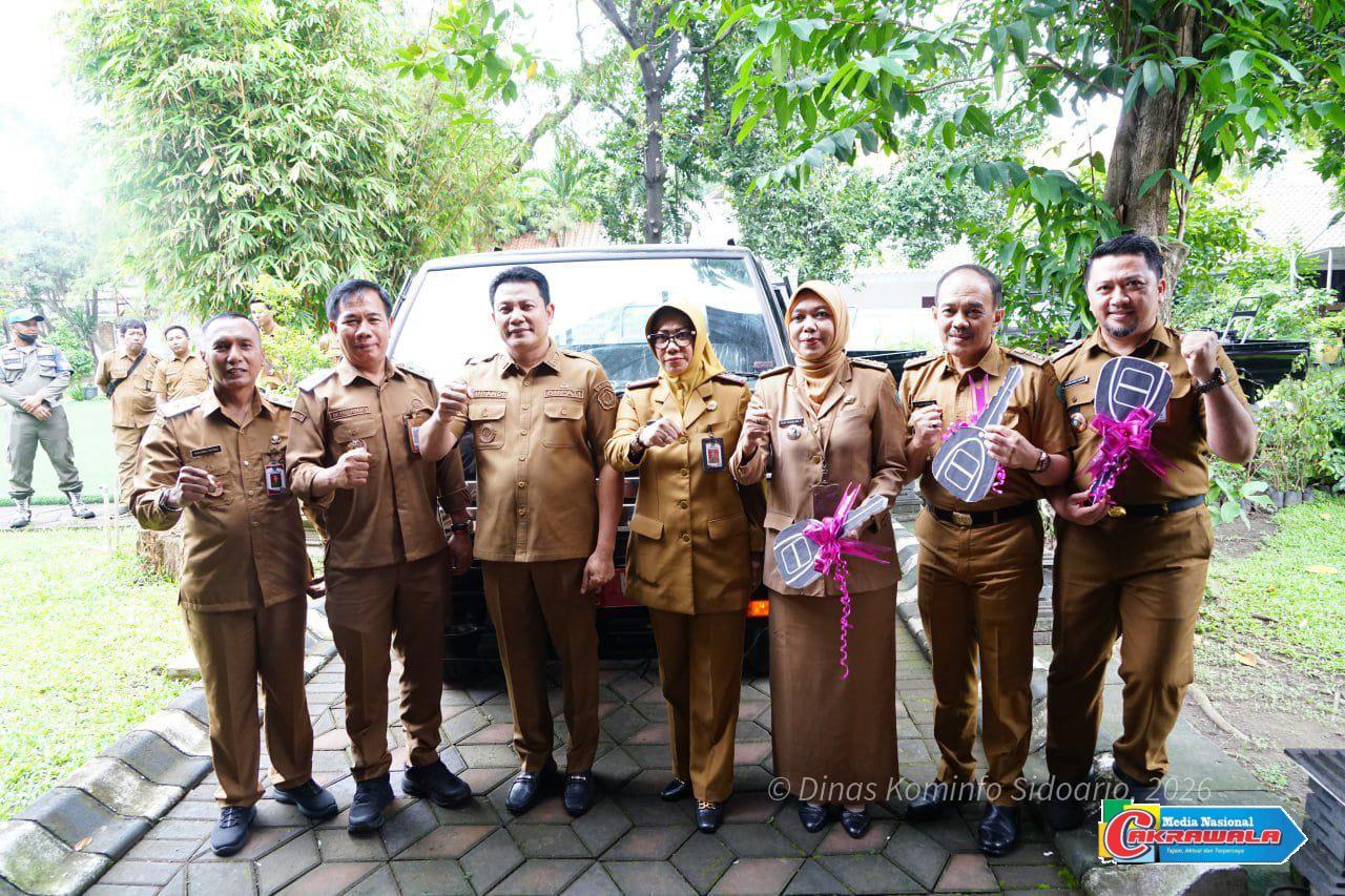 Sidoarjo, MN Cakrawala – Bupati Sidoarjo H. Subandi SH,M.Kn menyerahkan satu mobil pickup beserta satu unit stamper atau alat pemadat aspal kepada 18 kecamatan yang ada di Kabupaten Sidoarjo. Penyerahan dilakukan secara simbolis kepada Kecamatan Sidoarjo, Kecamatan Candi dan Kecamatan Gedangan. Penyerahan dilakukan di Pendopo Delta Wibawa kepada Camat Sidoarjo M. Aziz Muslim, Camat Candi Yuni Rismawati dan Camat Gedangan Asmara Hadi, Selasa pagi, (27/1/2026).
