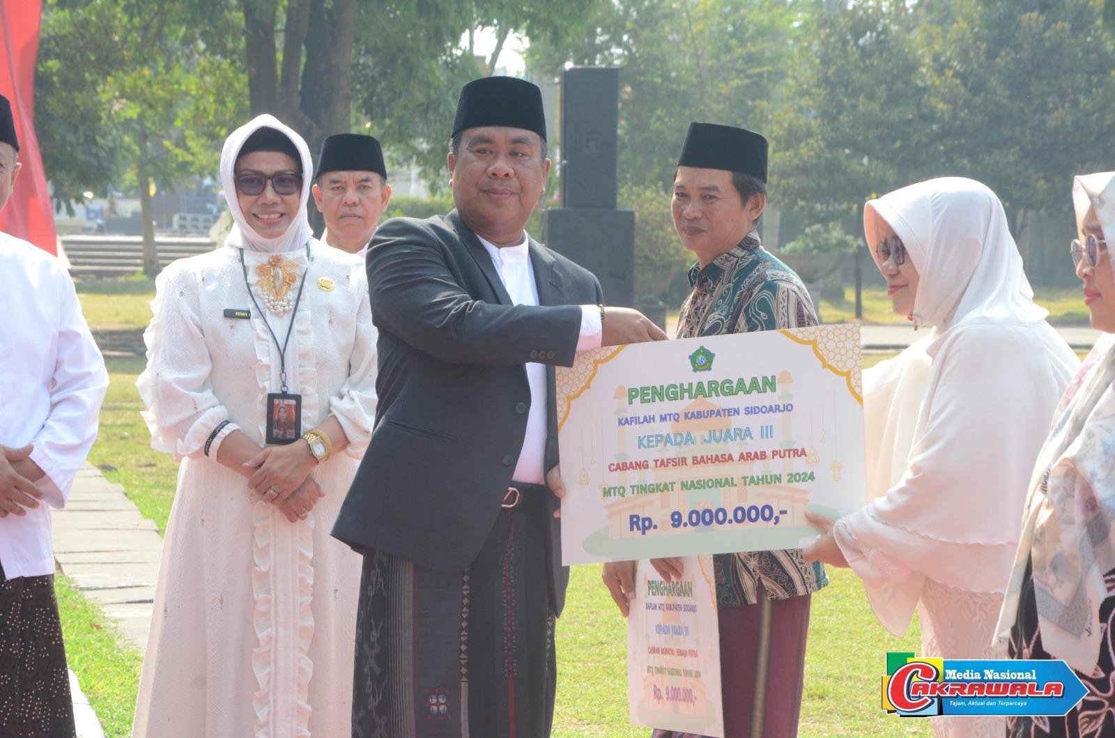 Dalam moment Hari Santri tahun ini,.Pemkab Sidoarjo memberikan penghargaan kepada santri Sidoarjo berprestasi. Mereka adalah santri yang telah mengharumkan nama Kabupaten Sidoarjo pada MTQ Tingkat Nasional. Pemkab Sidoarjo memberikan uang pembinaan kepada mereka yang menjadi juara. Ada lima orang. Masing-masing berhasil menjadi Juara III cabang muratal remaja putra, juara III cabang tafsir bahasa arab putra, juara III cabang MFQ beregu putri dan juara harapan I cabang tilawah dewasa putri serta juara harapan I cabang tilawah anak putri.
