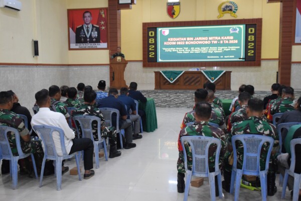 BONDOWOSO,MN Cakrawala – Komando Distrik Militer (Kodim) 0822 Bondowoso terus memperkuat sinergitas dengan masyarakat melalui kegiatan Pembinaan Jaring Mitra Karib Triwulan II Tahun Anggaran 2026. Kegiatan yang digelar di Aula Makodim 0822 Bondowoso ini diikuti sekitar 50 peserta dari berbagai unsur, mulai dari Babinsa hingga perwakilan mitra karib dari berbagai elemen masyarakat.Kamis (16/04/2026)