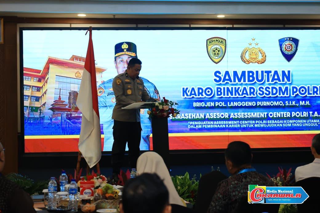 “Penguatan sistem meritokrasi melalui assessment center yang multi-tools dan multi-assessor untuk pembinaan karier anggota Polri agar terpilih personel Polri yang berintegritas dan berkompeten di tengah dinamika tantangan global yang kian kompleks”. Jelas Brigjen Langgeng.