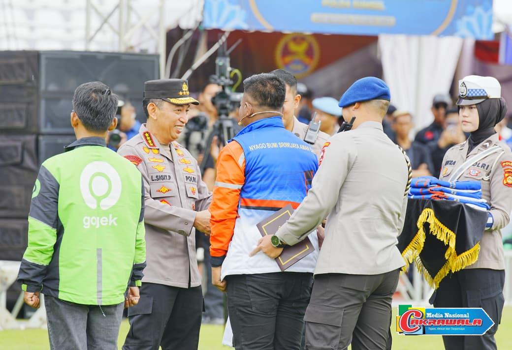Sumsel , MN Cakrawala– Kapolri Jenderal Listyo Sigit Prabowo memimpin apel ojek online (ojol) dan buruh kamtibmas ‘Nyago Bumi Sriwijaya Aman Bae’ di Stadion Bumi Sriwijaya, Kota Palembang, Sumatera Selatan (Sumsel). Dalam kegiatan ini, Ia menekankan bahwa, untuk terus menjaga nilai persatuan-kesatuan hingga stabilitas nasional.