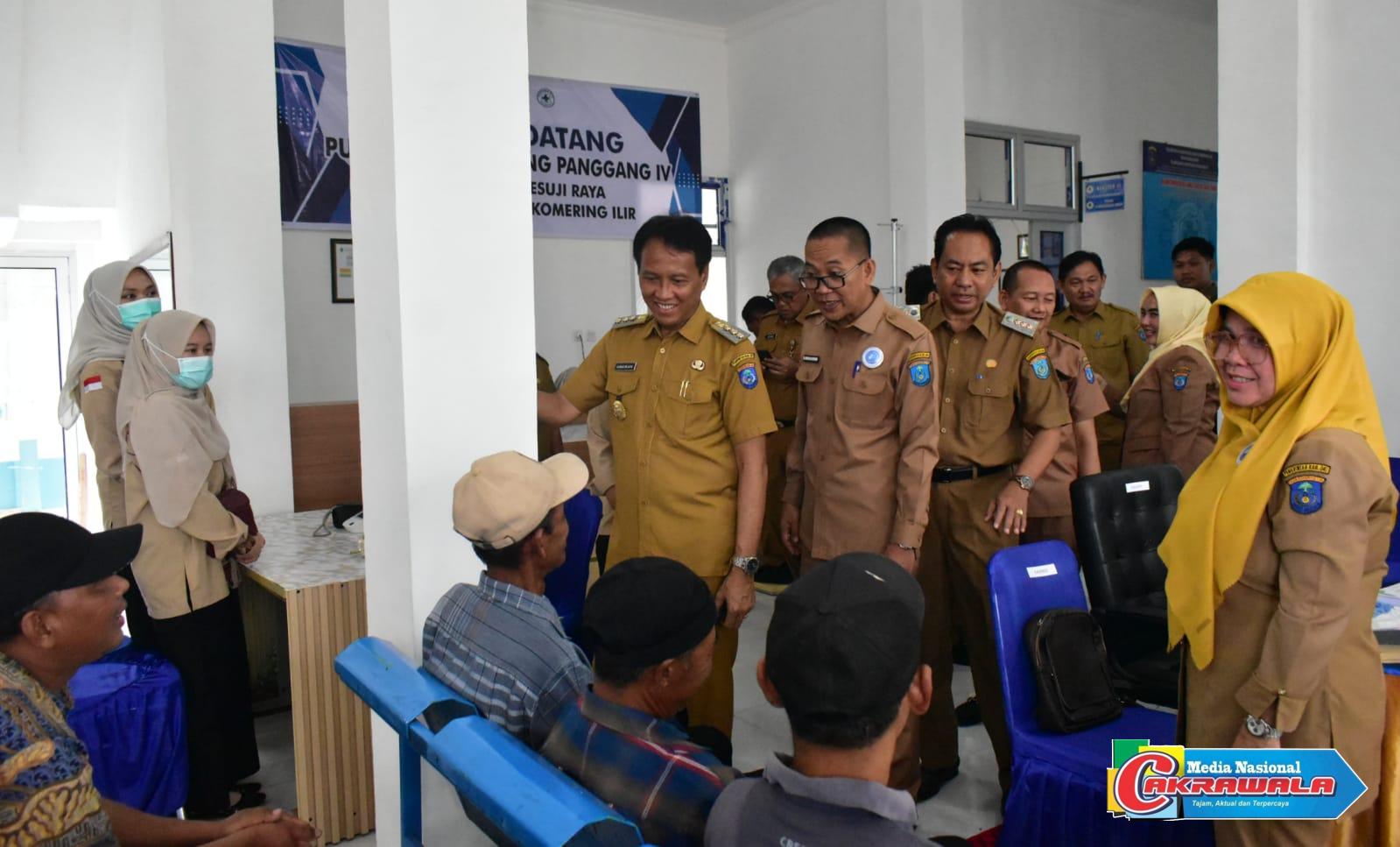 Asmar bersama Kepala Dinas Kesehatan (Dinkes) OKI, Iwan Setiawan dan OPD terkait memastikan kondisi alur pendaftaran mulai dari pemeriksaan loket, proses pemeriksaan, hingga tindak lanjut usai hasil pemeriksaan keluar melalui edukasi langsung kepada warga.
