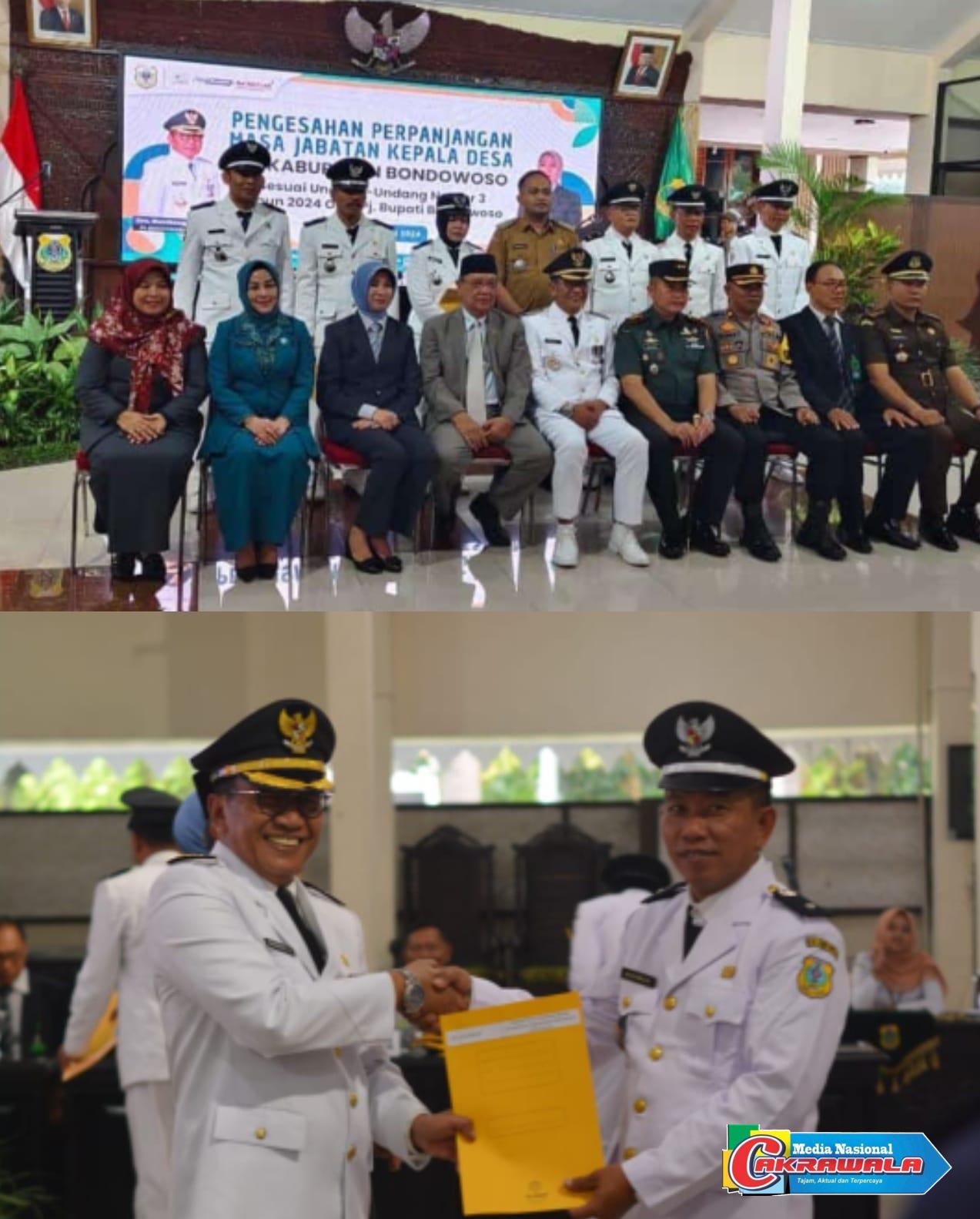 Pj Bupati Bondowoso, Bambang Soekwanto secara langsung menyerahkan Surat Keputusan (SK) dan mengesahkan ratusan Kepala Desa yang telah masuk didalam penambahan masa jabatan