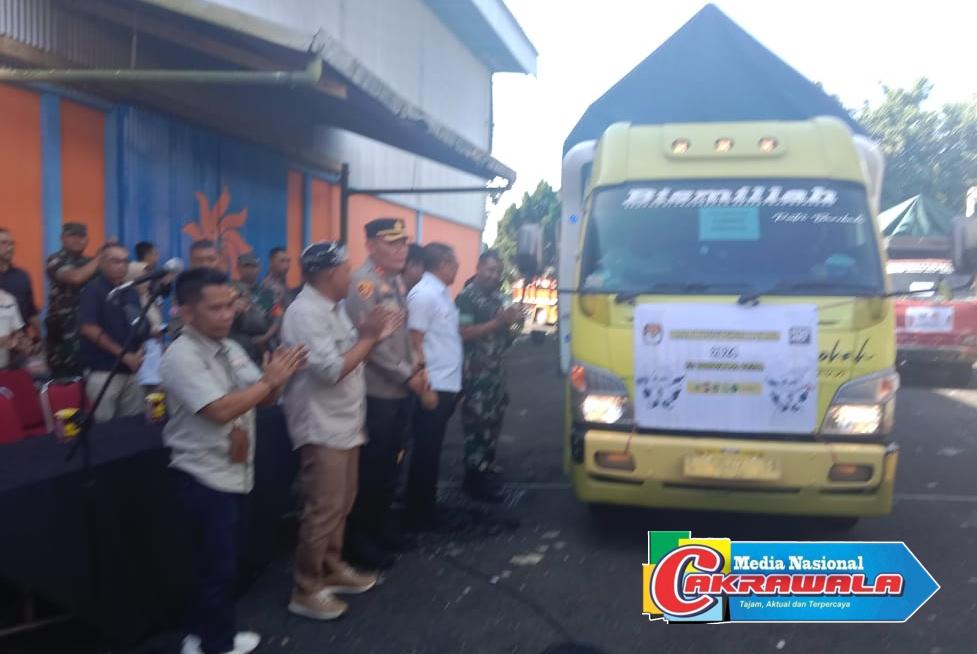Bondowoso,MNCakrawala-Pj Bupati Bondowoso melepas Distribusi Logistik Pemilu 2024 Komisi Pemilihan Umum Kabupaten Bondowoso Jawa Timur, Jum’at (9/2/2024)