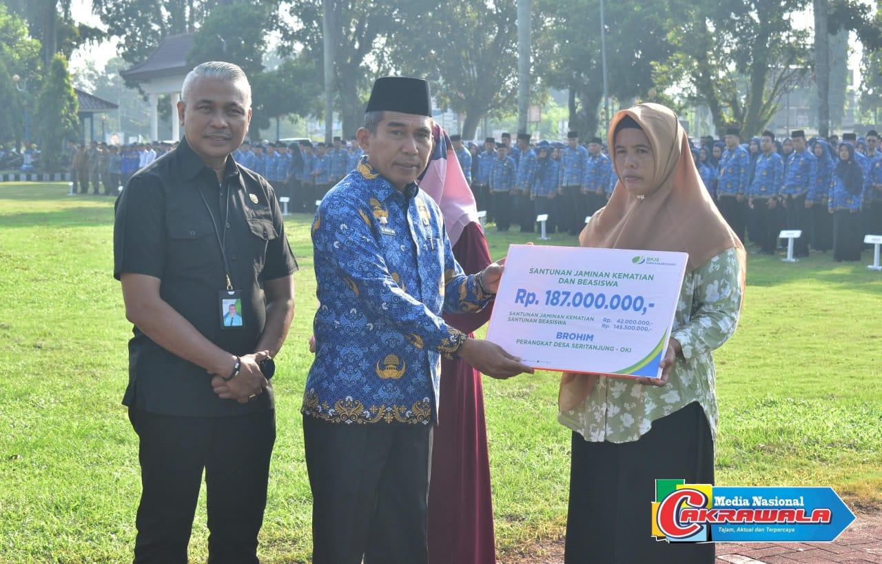 Di sela-sela Apel Pj Sekda OKI didampingi kepala BPJS Ketenagakerjaan Palembang Menyerahkan santunan Jaminan Kematian kepada Peserta BPJS Ketenagakerjaan yang Telah dianggarkan oleh Pemda OKI.