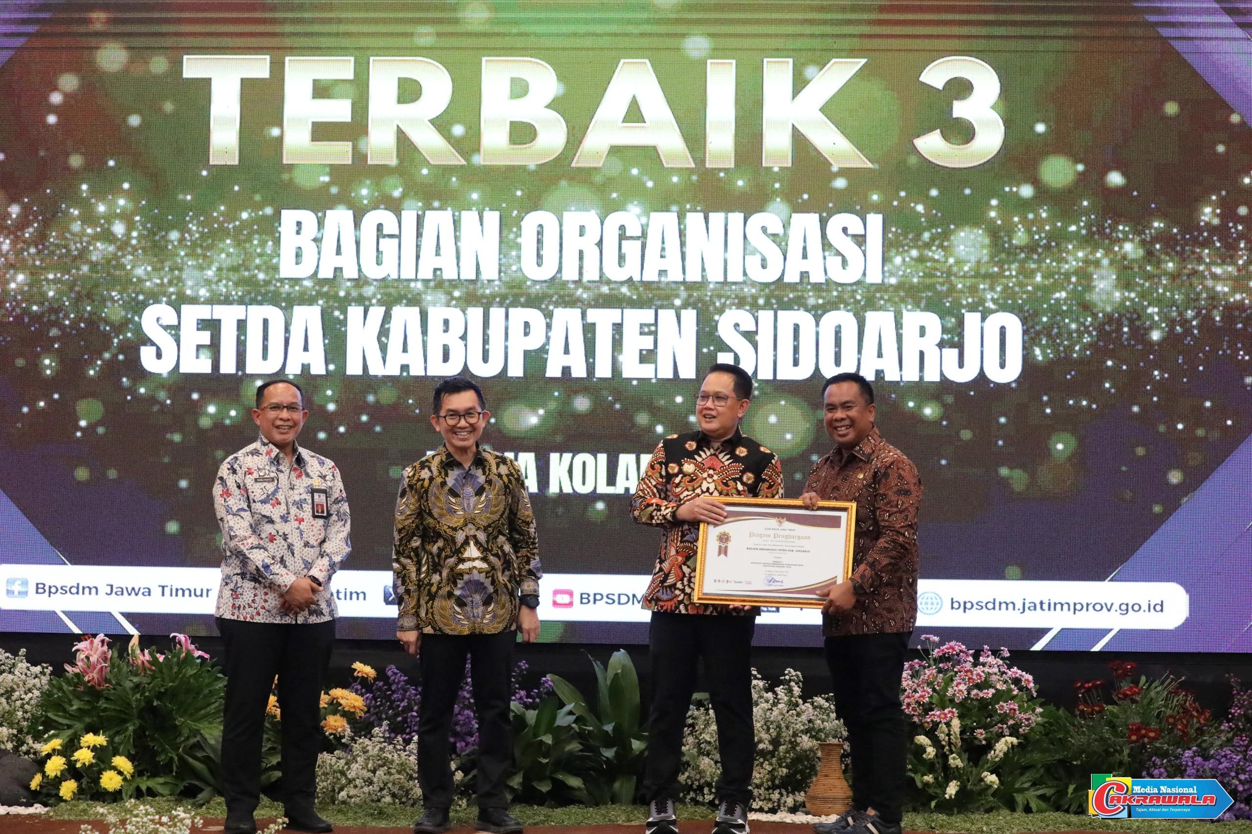 Sidoarjo, MN Cakrawala– Bagian Organisasi Setda Kabupaten Sidoarjo dalam program “Kerja Kolaborasi” meraih penghargaan Terbaik 3 Kategori Inovasi Pemerintah Kabupaten Kota Inovation Academy 2024 yang diselenggarakan oleh LAN RI (Lembaga Administrasi Negara Republik Indonesia) melalui BPSDM Jatim. Penghargaan tersebut dilaksanakan pada acara penutupan pelatihan kepemimpinan Nasional tingkat XXVI tahun 2024 di Gedung BPSDM Jatim, Kamis(14/11).