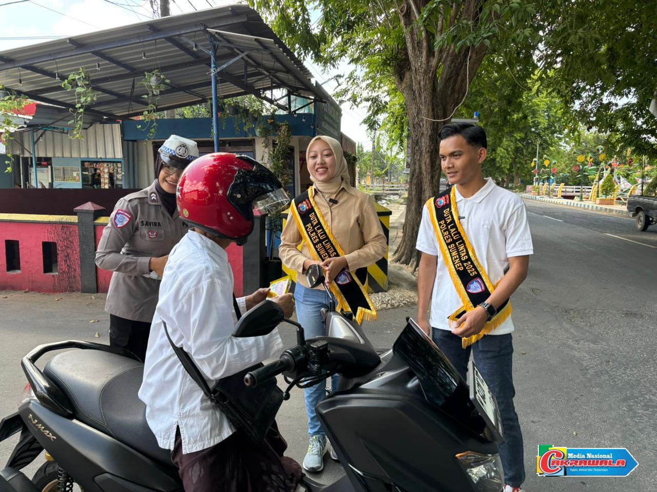 SUMENEP, MN Cakrawala – Dalam upaya meningkatkan kesadaran masyarakat akan pentingnya tertib berlalu lintas, Satuan Lalu Lintas (Satlantas) Polres Sumenep Polda Jatim menggelar kegiatan “Polantas Menyapa bersama Duta Lalu Lintas 2025” di Pos KTL Simpang 3 Stadion Sumenep, Selasa (14/10/2025).