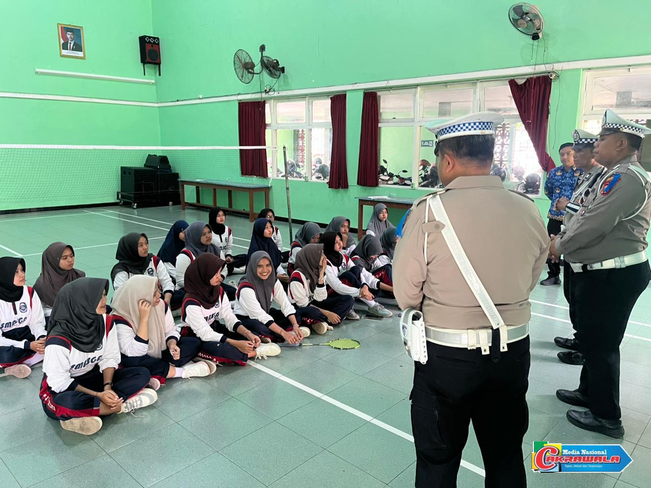 Personel Polantas hadir memberikan sosialisasi langsung kepada para pelajar, membahas pentingnya penggunaan helm SNI, larangan berkendara bagi pelajar yang belum memiliki SIM, kewajiban mematuhi rambu-rambu lalu lintas, serta etika berlalu lintas guna menciptakan keselamatan bersama. Para siswa terlihat antusias mengikuti pemaparan dan berdialog dengan petugas terkait berbagai situasi yang sering mereka jumpai di jalan raya.