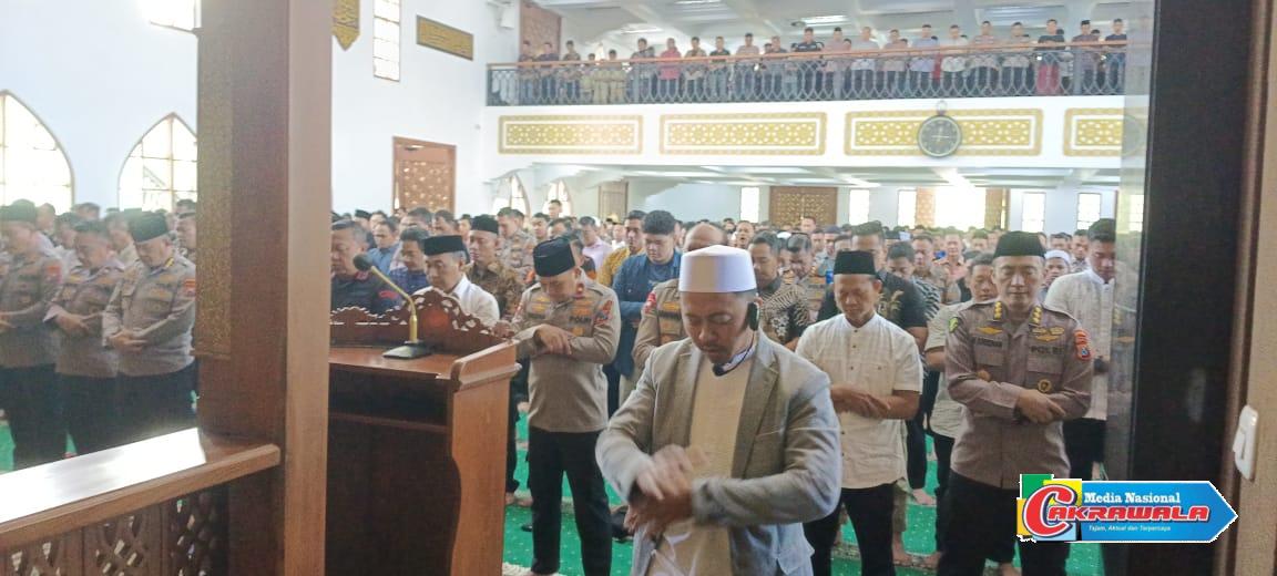 Kegiatan kemudian dilanjutkan dengan doa bersama untuk keselamatan bangsa dan negara, serta memohon perlindungan bagi anggota Polri yang tengah bertugas menjaga keamanan dan ketertiban masyarakat.