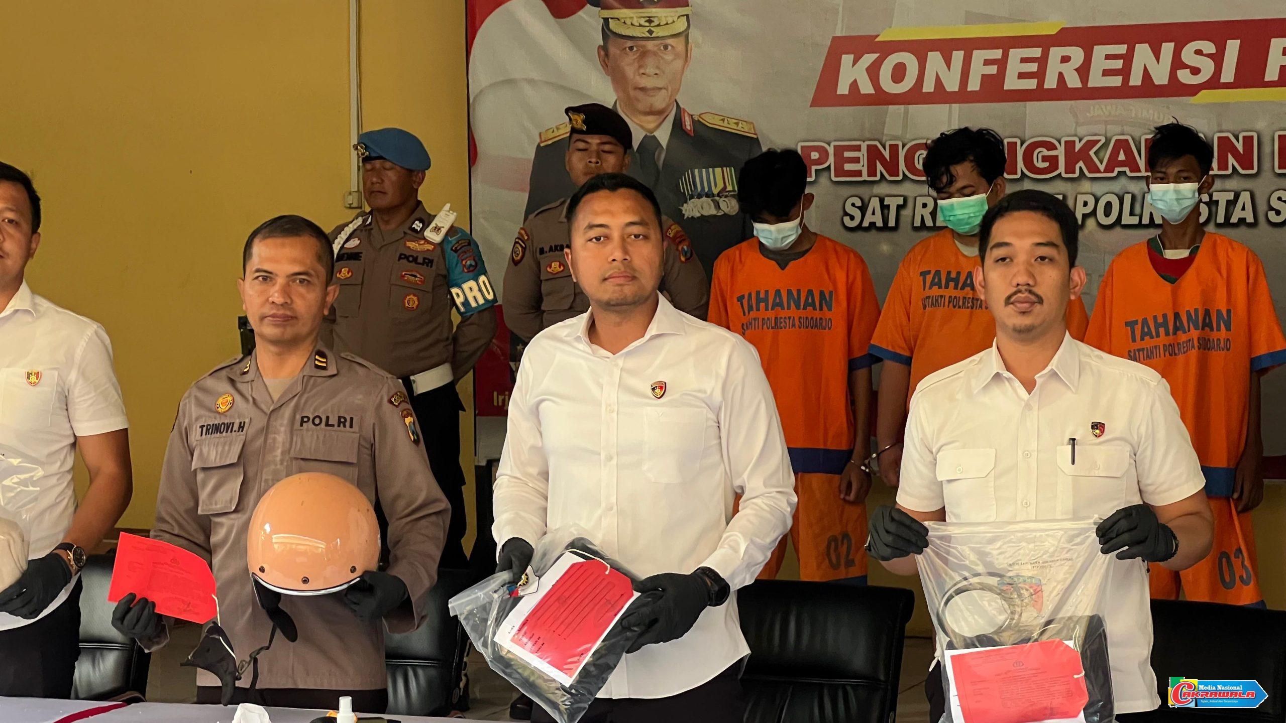 Mereka yang berhasil diamankan Satreskrim Polresta Sidoarjo, adalah ZMA (19) warga Gajah Magersari, KSP (20) warga Gajah Magersari, FNW (18) warga Desa Kloposepuluh, AC (15) warga Desa Kloposepuluh, BA (14) warga Ketintang Kota Surabaya, RF (16) warga Desa Kloposepuluh dan AMP (17) Kecamatan Purworeja Klampok, Kabupaten Banjarnegara.