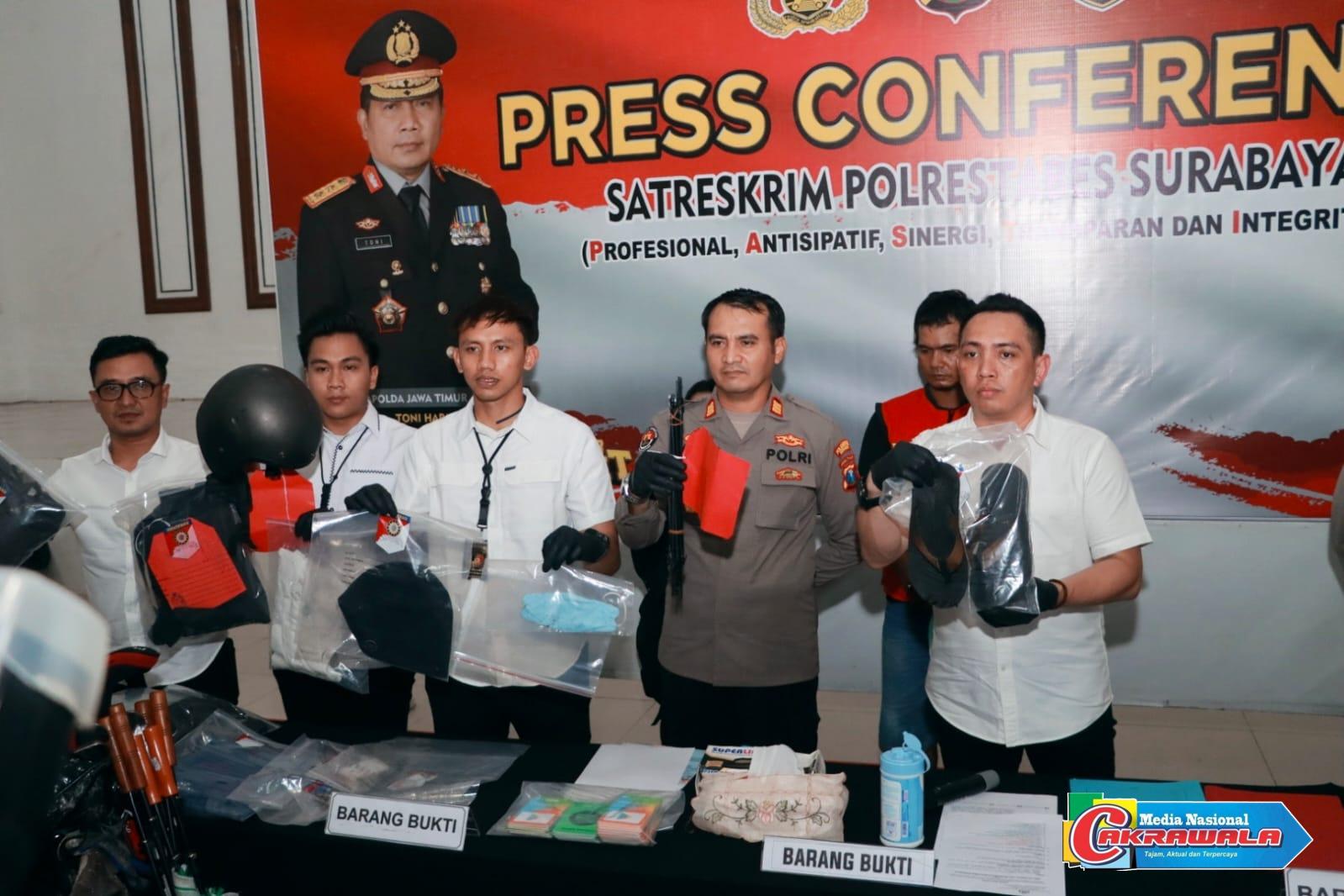 Pelaku dibekuk anggota Jatanras Polrestabes Surabaya, setelah aksinya menggegerkan masyarakat Surabaya.