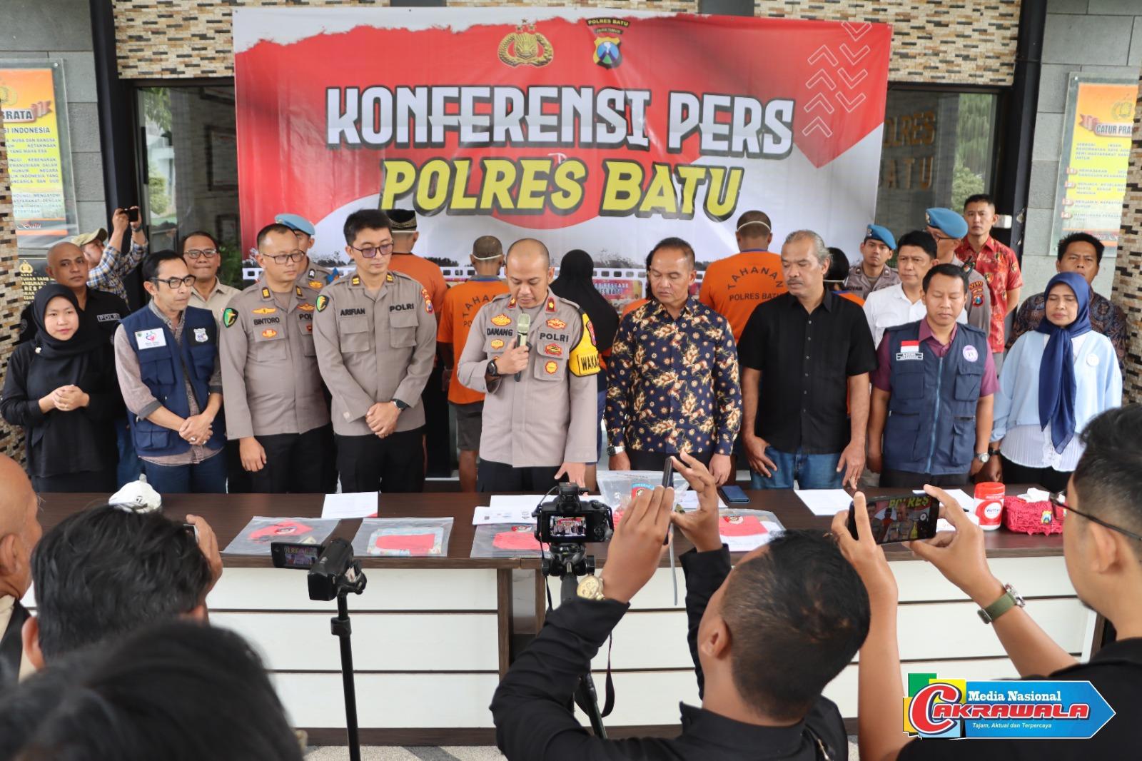 Hal itu disampaikan oleh Kapolres Batu AKBP Andi Yudha Pranata, S.H., S.I.K., M.Si. diwakili oleh Wakapolres Batu Kompol Danang Yudanto dalam Konferensi Pers yang digelar di Mapolres Batu pada Jumat (3/1/2025).