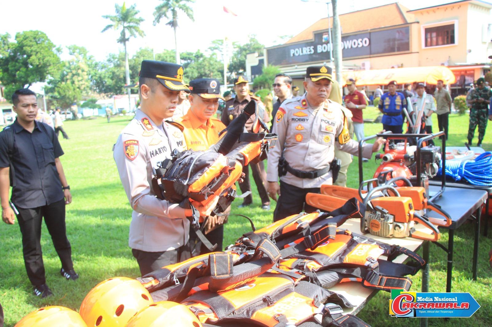 Bondowoso,MN Cakrawala-Polres Bondowoso dalam menghadapi situasi alam yang mulai ekstrim mengelar apel kesiapan tanggap bencana untuk itu dalam penanganan bencana menjadi agenda strategis pemerintah. Salah satu alasannya, Indonesia merupakan negara yang rawan bencana alam, baik bencana tektonik, vulkanik, maupun hidrometeorologi.