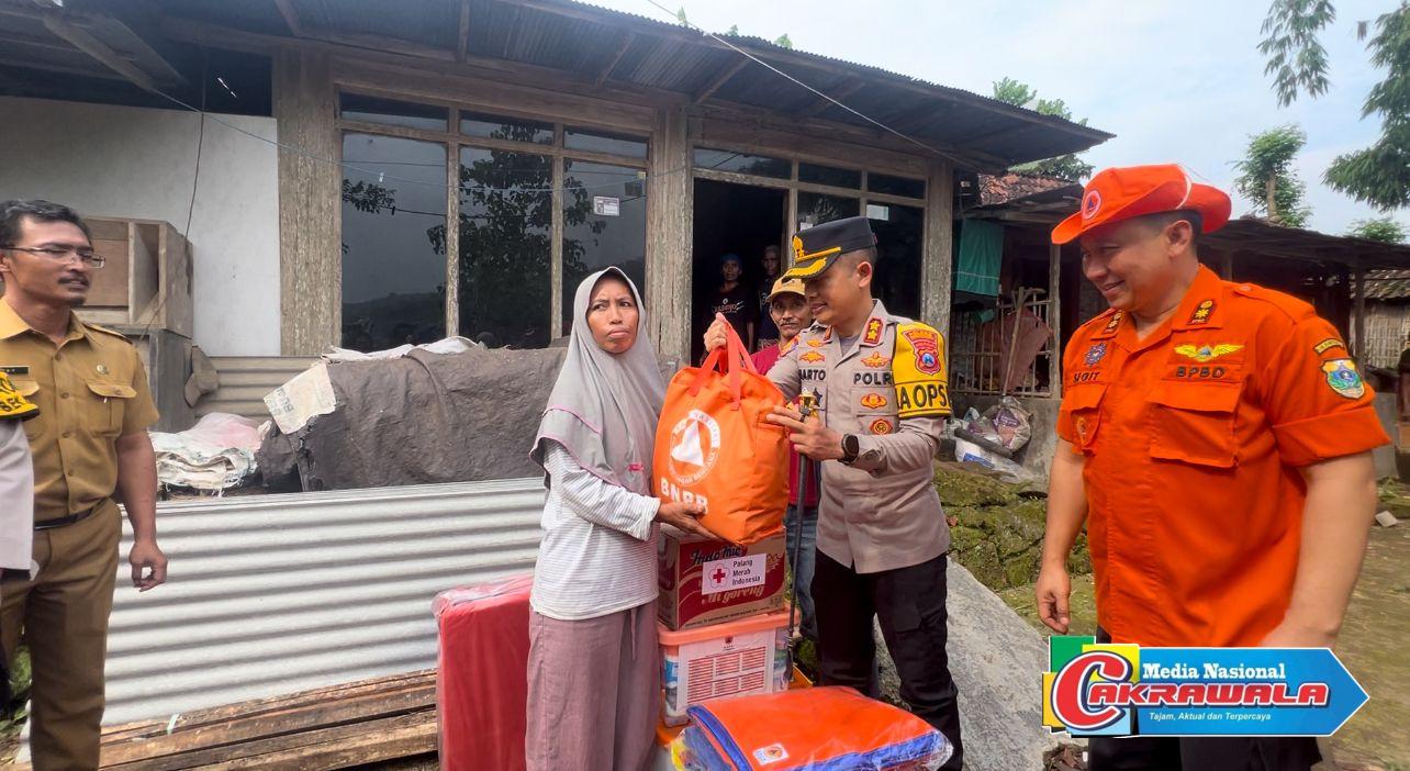 Bondowoso,MN Cakrawala-Polres Bondowoso bersama Badan Penanggulangan Bencana Daerah (BPBD) menyerahkan bantuan logistik kepada korban rumah ambruk pasca tertimpa pohon besar di Desa Gubrih, Kecamatan Wringin, Kabupaten Bondowoso.