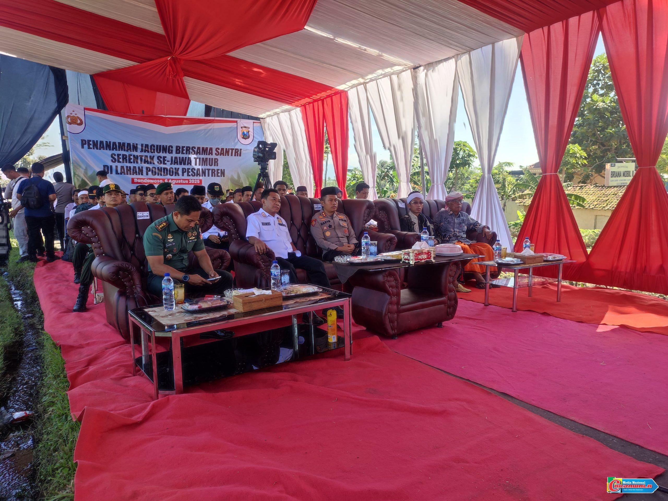 Bondowoso,Cakrawala-Dalam rangka mendukung program Presiden RI Prabowo Subianto dalam ketahanan pangan untuk warga,Polres Bondowoso melaksanakan penanaman jagung di Desa Kerang Sukosari,tepatnya di Persawahan Ponpes Mambaul ulum yang diasuh oleh Lora Nurul Jamal Habaib,SH Rabu,06/08/2025.