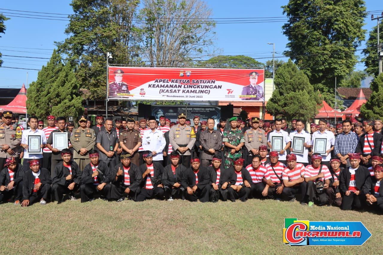 Bondowoso,MNCakrawala-Polres Bondowoso menggelar Apel Ketua Satuan Keamanan Lingkungan yang disingkat (Kasat Kamling) yang berada di wilayah Kabupaten Bondowoso, Rabu 21/06 2023.