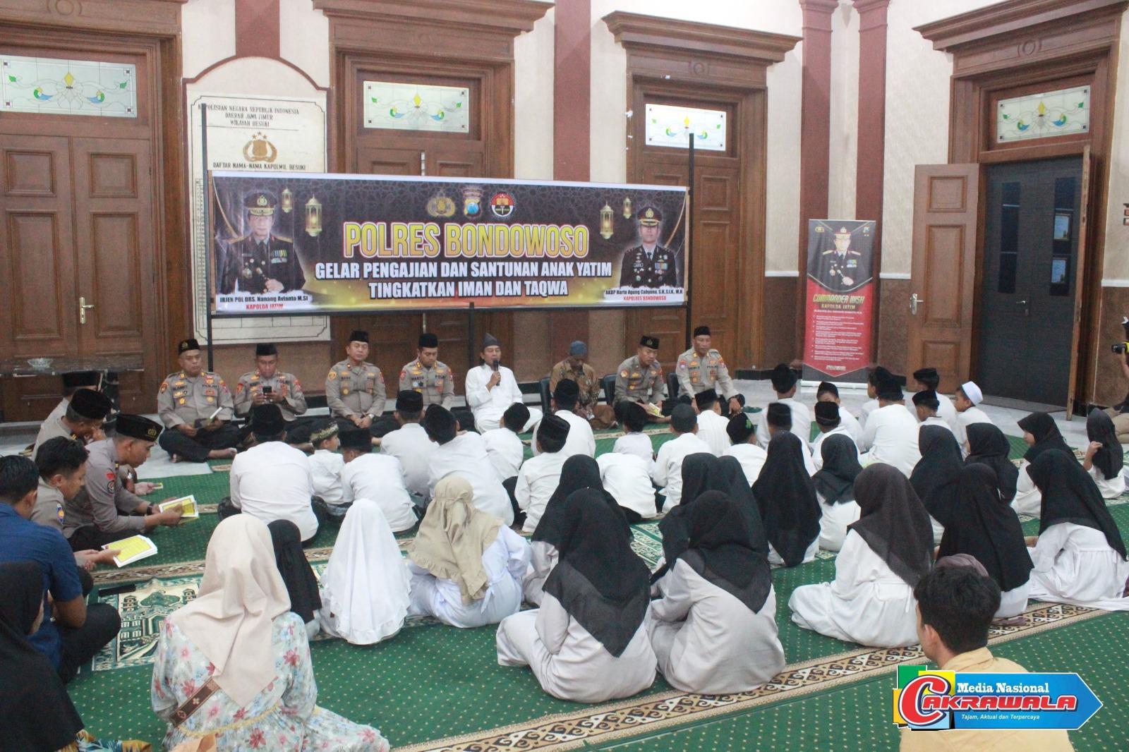 Bondowoso,Cakrawala – Dalam rangka memperkuat keimanan, ketaqwaan, serta menumbuhkan nilai-nilai kemanusiaan di lingkungan kepolisian, Polres Bondowoso kembali menggelar kegiatan rutin pengajian dan pemberian santunan kepada anak yatim. Kegiatan yang berlangsung pada hari Kamis, 15 Mei 2025, ini bertempat di Lobi Polres Bondowoso dan dimulai pada pukul 16.30 WIB hingga selesai.