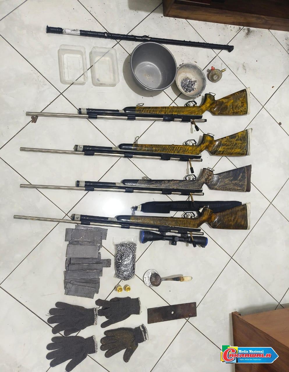 Selain senjata dan amunisi, petugas juga menyita sejumlah peralatan dan bahan yang digunakan untuk memproduksi peluru, seperti alat cetak peluru (molding), lempengan timah, teleskop, sarung tangan, tatakan besi, wajan, cetok, baskom, hingga regulator.