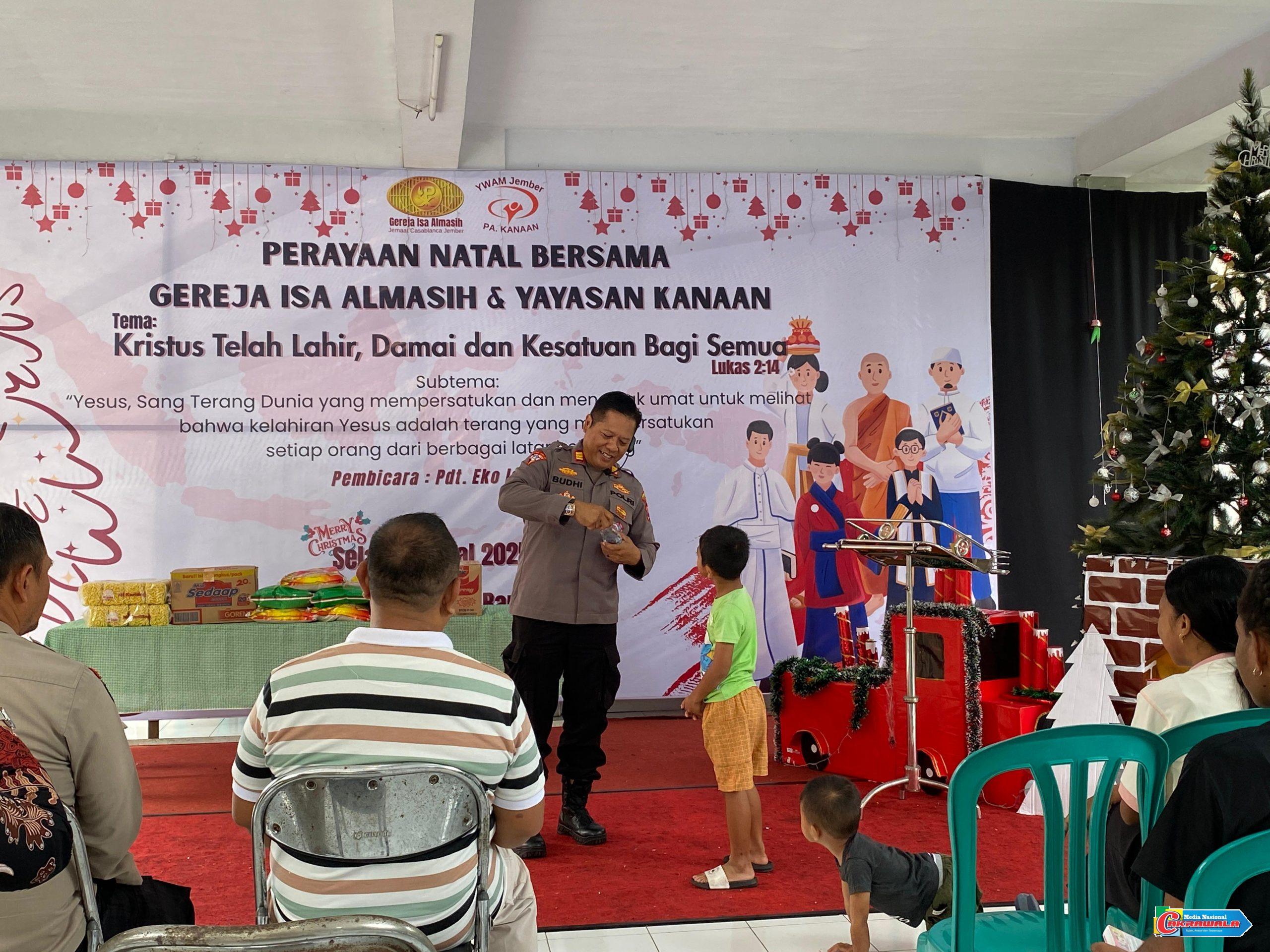 JEMBER,Cakrawala – Dalam rangka menyambut perayaan Natal, Polres Jember Polda Jatim menggelar kegiatan sosial dengan berbagi kasih ke Panti Asuhan Kanaan di Kelurahan Gebang, Kecamatan Patrang, Kabupaten Jember,Jum’at, (19/12/2025)