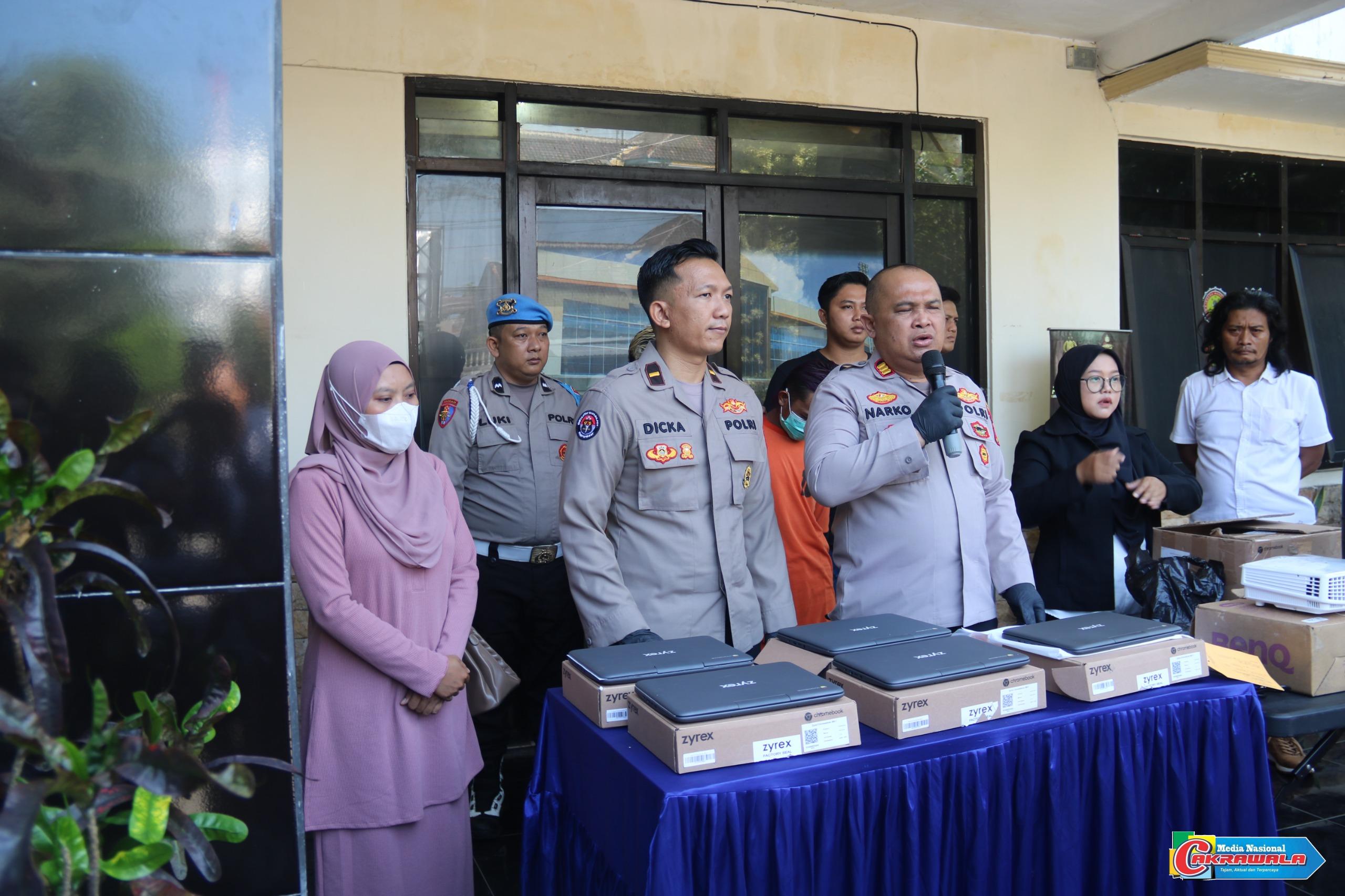 “Modusnya yaitu tersangka mencongkel jendela menggunakan obeng kemudian setelah masuk mencongkel beberapa almari yang mana almari tersebut ada isinya yaitu berupa laptop,” imbuhnya.