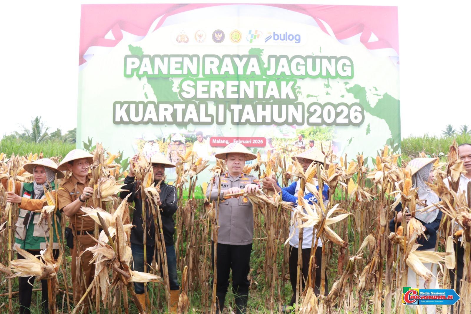 MALANG,Cakrawala – Polres Malang Polda Jatim menggelar panen raya Jagung serentak kuartal I Tahun 2026 sebagai bagian dari Program Ketahanan Pangan, Selasa (10/2/2026).