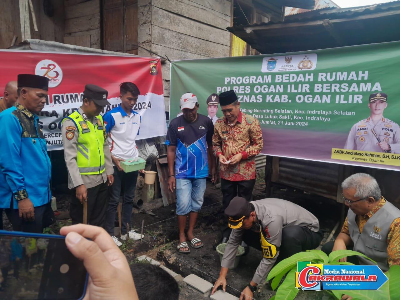 Polres Ogan Ilir Dan Wakil Bupati 0i Agenda Peletakan Batu Pertama Bedah Rumah di Desa Tebing Gerinting