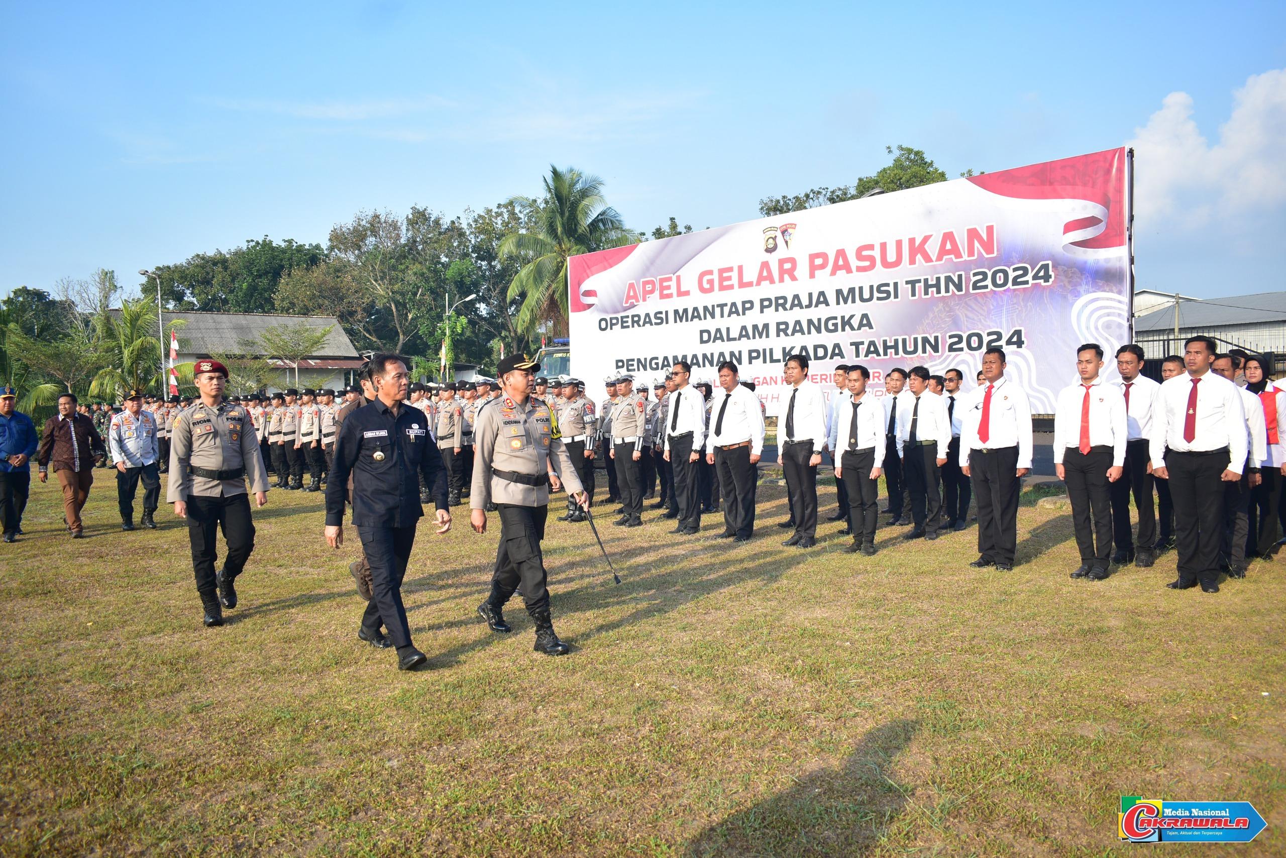 Kapolres OKI, AKBP Hendrawan Susanto, SH, S.I.K memimpin langsung kegiatan apel gelar pasukan menegaskan pentingnya peran Polri dalam menjaga keamanan dan ketertiban masyarakat selama proses pilkada di OKI tahun 2024.