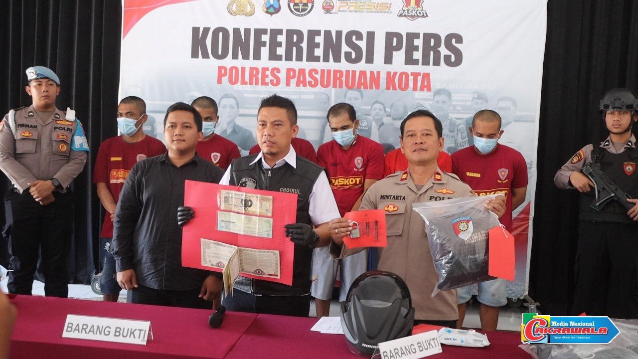 KOTA PASURUAN,Cakrawala – Aksi komplotan pencuri motor yang kerap meresahkan warga akhirnya terhenti di tangan Satreskrim Polres Pasuruan Kota Polda Jatim.