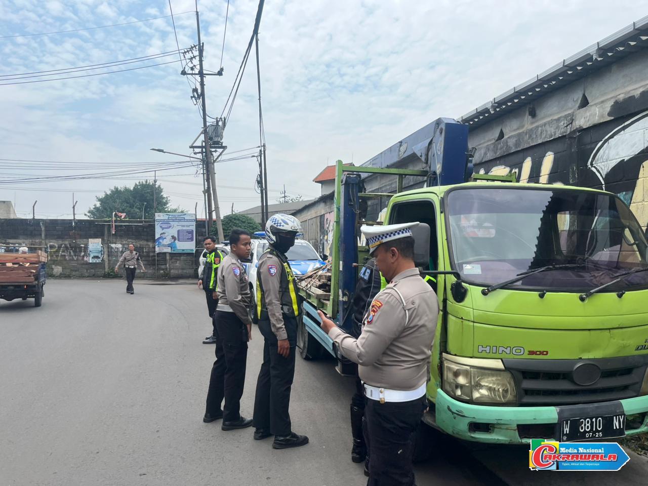 Tak butuh waktu lama, Unit Turjawali dan Unit Urai Satlantas Polres Pelabuhan Tanjungperak mencurigai sebuah truk yang terparkir di pinggir jalan di wilayah Semampir.