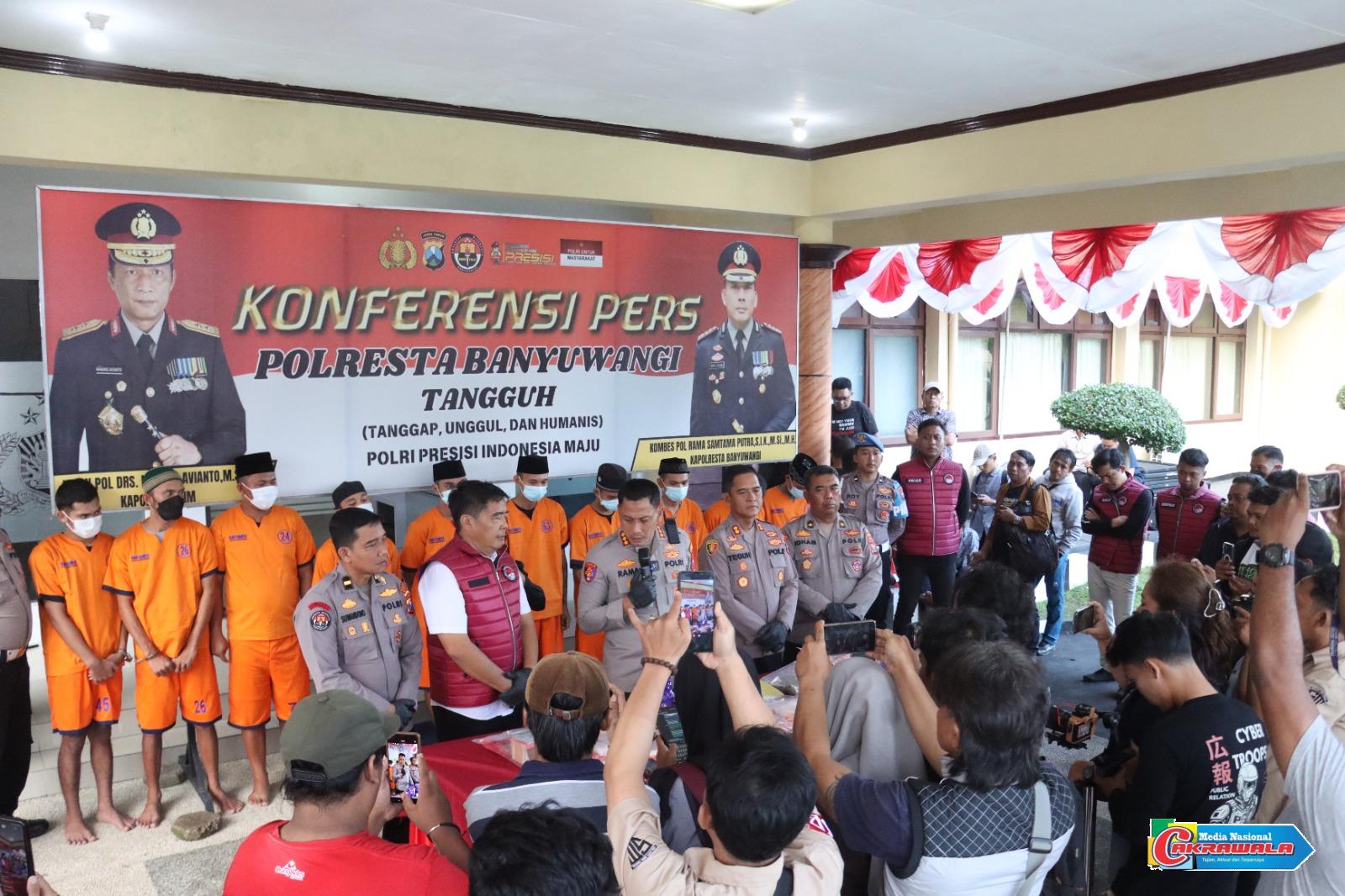 Kapolresta Banyuwangi, Kombes Pol Rama Samtama Putra, S.I.K., M.Si., M.H., dalam keterangan resminya menyampaikan bahwa dari seluruh kasus tersebut, terdapat Dua tersangka diamankan dengan barang bukti terbanyak.