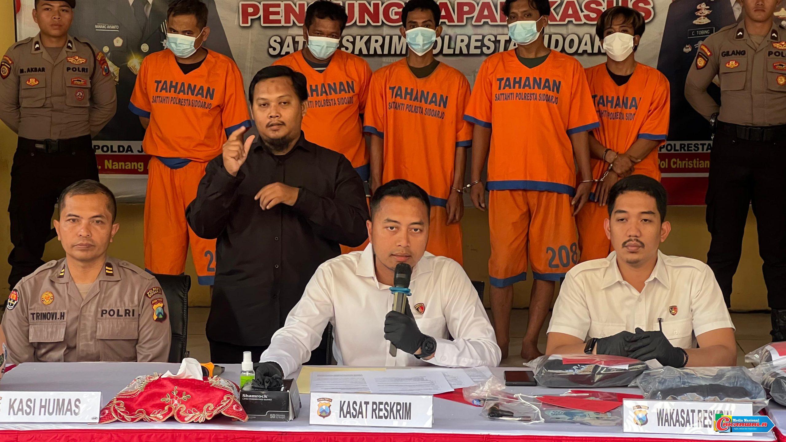 SIDOARJO,Cakrawala – Satreskrim Polresta Sidoarjo Polda Jatim berhasil mengamankan Lima orang spesialis curanmor.