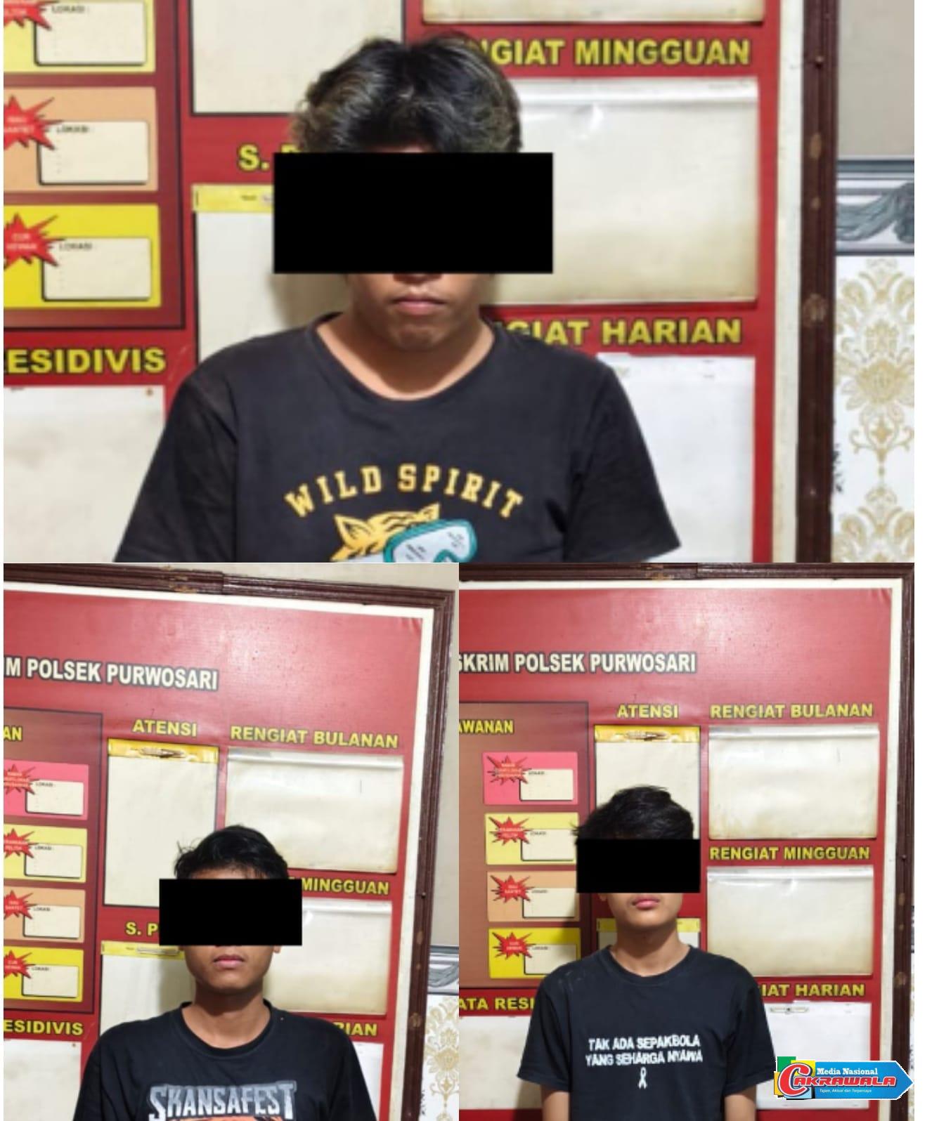 PASURUAN, MN Cakrawala-Polsek Purwosari mengamankan tiga remaja pelaku pengeroyokan terhadap seorang pemuda berusia 16 tahun di depan Indomart Purwosari, Jalan Niaga II, Kelurahan Purwosari, Kabupaten Pasuruan, Kamis (20/11/2025) dini hari.