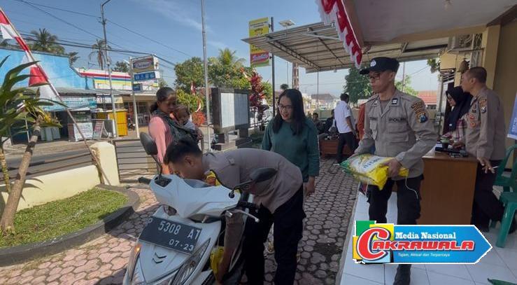 “Kami mendukung penuh program Gerakan Pangan Murah ini, antusias masyarakat sangat tinggi adanya bazar yang menjual beras dengan harga hanya Rp.57.000,-,”jelas IPTU Andi Tamba.