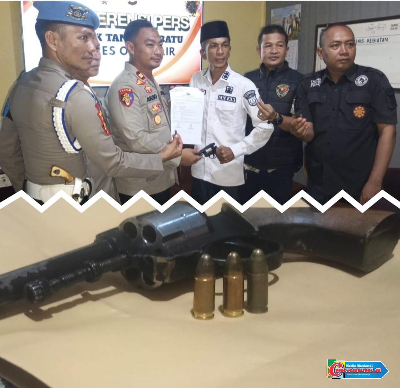 Tanjung Batu,Ogan ilir, MNCakrawala-Dalam rangka Operasi Pekat 2025, Polsek Tanjung Batu menerima penyerahan senjata api dari masyarakat secara sukarela. Kapolsek Tanjung Batu, IPTU Dr. Syaparudin Akso, S.H., M.Si., CPHR., CHT,,menggelar konferensi pers untuk menyampaikan penyerahan senjata api ini.