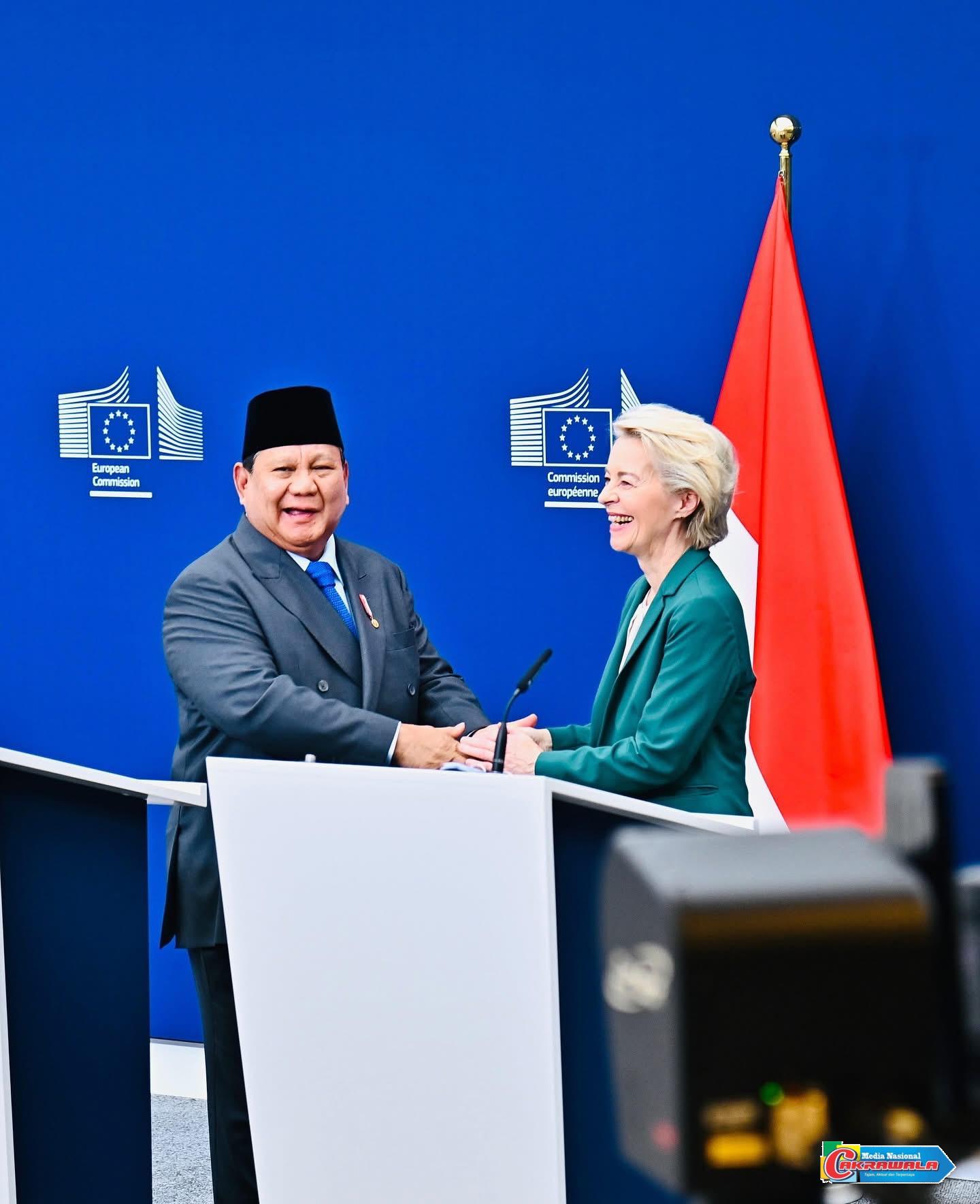 Belgia,Cakrawala-Melalui kesepakatan di tiga bidang kerja sama. Hal tersebut disampaikan Presiden Von der Leyen dalam pernyataan pers bersama Presiden Republik Indonesia, Prabowo Subianto di Ruang Media, Kantor Pusat Uni Eropa, Gedung Berlaymont, Brussel, Belgia.