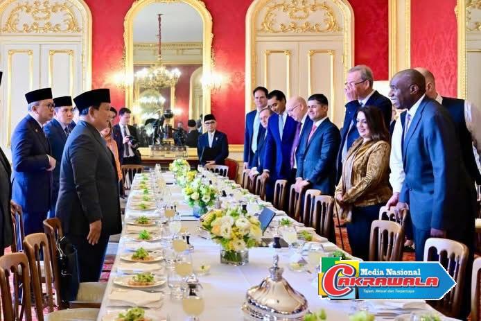 London,Cakrawala-Presiden RI Prabowo Subianto menghadiri forum bisnis dan investasi yang dilanjutkan dengan jamuan santap siang yang diselenggarakan oleh Wakil Perdana Menteri Inggris David Lammy di Lancaster House, London, Selasa (20/01/2026)