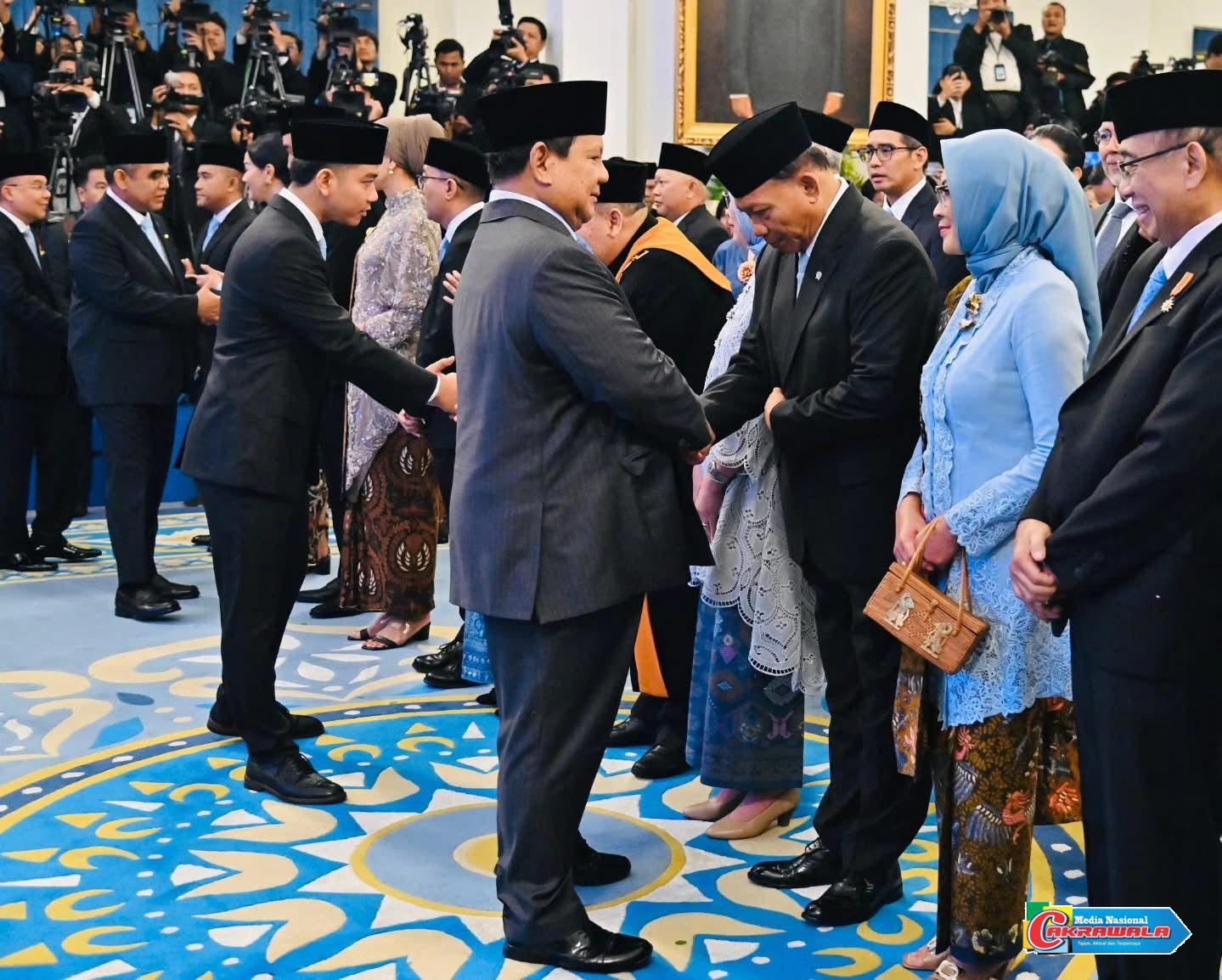 Jakarta,Cakrawala-Senin 25 Agustus 2025,Pejabat yang dilantik meliputi Kepala dan Wakil Kepala Badan Otorita Pengelola Pantai Utara Jawa, Kepala Badan Industri Mineral, Kepala Badan Narkotika Nasional, Kepala Badan Nasional Penanggulangan Terorisme, serta 8 Duta Besar Luar Biasa dan Berkuasa Penuh (Dubes LBBP) Republik Indonesia (RI) untuk negara sahabat. Selain itu, Presiden juga menyaksikan pengucapan sumpah Wakil Ketua Mahkamah Agung Bidang Yudisial.