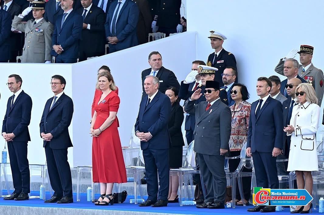 Penampilan kontingen Indonesia menjadi perhatian khusus dalam parade militer ini. Presiden Prabowo dan Presiden Macron, serta para tamu undangan tampak berdiri dan memberikan penghormatan serta tepuk tangan meriah saat kontingen Indonesia melintas di hadapan podium utama.(red)