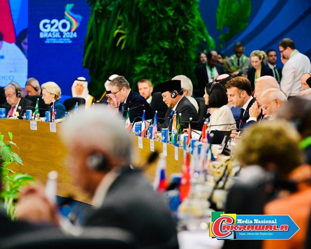 Brasilia,MN Cakrawala-20 November 2024 – Presiden Republik Indonesia, Prabowo Subianto, menegaskan komitmen Indonesia terhadap pembangunan berkelanjutan dan transisi energi hijau dalam sesi ketiga Konferensi Tingkat Tinggi (KTT) G20 yang berlangsung di Brasil pada Selasa, 19 November 2024. Sesi tersebut mengangkat tema “Sustainable Development and Energy Transition”.