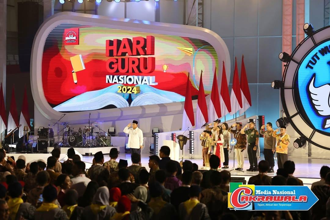 Jakarta,MN Cakrawala. Com– Presiden Republik Indonesia, Prabowo Subianto, menghadiri Puncak Peringatan Hari Guru Nasional yang digelar di Jakarta International Velodrome. Dalam sambutannya, Presiden menegaskan bahwa pendidikan menjadi prioritas utama pemerintahannya dengan alokasi anggaran terbesar dalam sejarah Indonesia.