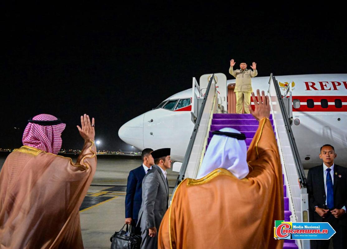 Jeddah,Cakrawala-Presiden Republik Indonesia, Prabowo Subianto, mengakhiri kunjungan kenegaraannya di Kerajaan Arab Saudi dan bertolak meninggalkan Jeddah pada Kamis, 3 Juli 2025. Presiden Prabowo dan rombongan terbatas lepas landas dari Royal Terminal, Bandar Udara Internasional King Abdulaziz, Jeddah, pada pukul 03.15 waktu setempat.