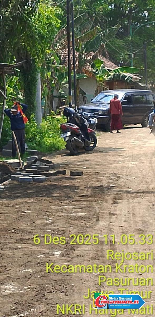 Pasuruan, Cakrawala.com-Diduga proyek milik Dinas Binamarga Dan Bina Kontruksi dalam pengerjaan rekontruksi jalan Desa Rejosari kecamatan Kraton Kabupaten Pasuruan dengan nilai pagu Rp.178.470.000 Melalui pelaksana CV.Taman Sari dengan Konsultans Pengawas Koperasi Karyawan Inti Kesejahteraan, Senin (8/12/2025)