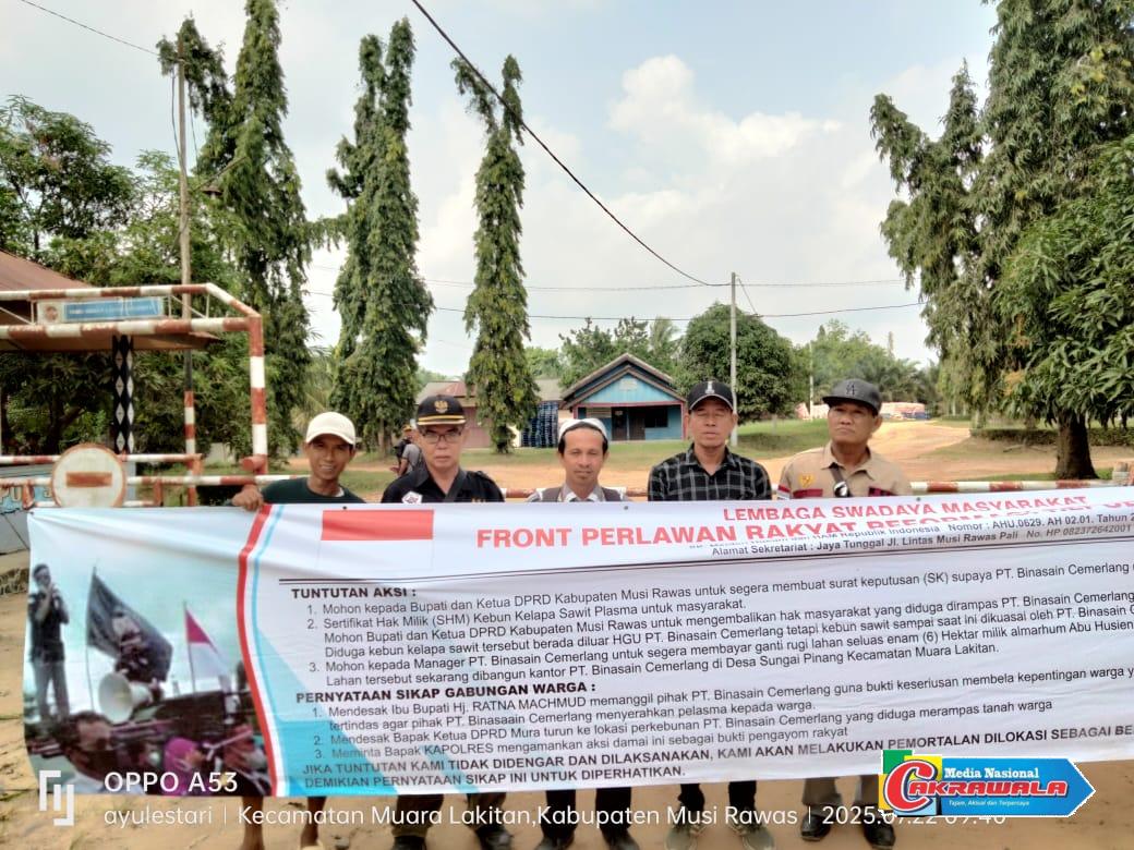 Media Nasional cakrawaa.com , Musi Rawas Sumatra Selatan -Selasa 22 juli 2025,Lebih dari sepuluh tahun PT Binasain cemerlang membohongi masyarakat sehingga Ratusan masa dari desa sungai Pinang , desa Muara Rengas , Desa Anyar dan desa Semangus Baru kecamatan Muara Lakitan kabupaten Musi Rawas provinsi Sumatra Selatan yang tergabung di dalam Lembaga swadaya masyarakat front perlawanan rakyat reformasi republik indonesia mendatangi kantor PT Binasain Cemerlang (bsc) pukul 08,30 sampai pukul 12.selasa 22 juli 2025.