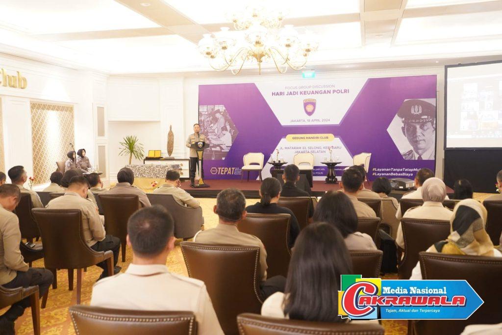 Jakarta,MNCakrawala-Pusat Keuangan (Puskeu) Polri menggelar kegiatan Focus Group Discussion (FGD) Tatap Muka sekaligus virtual meeting bersama Bidkeu Polda Jajaran pada Kamis (18/4/2024) di Gedung Mandiri Club, Jalan Mataram No.33 Selong, Kebayoran Baru, Jakarta Selatan.