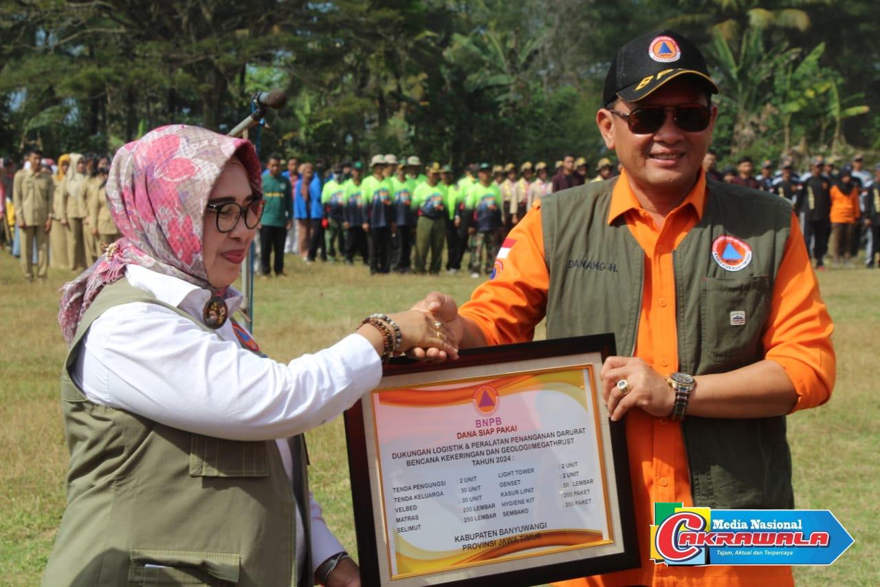 Pada pelaksanaan acara apel siaga tersebut di hadiri unsur Forkopimka plus dan juga di berikan bantuan alat dan prasarana untuk menghadapi bencana dari BNPB Banyuwangi.