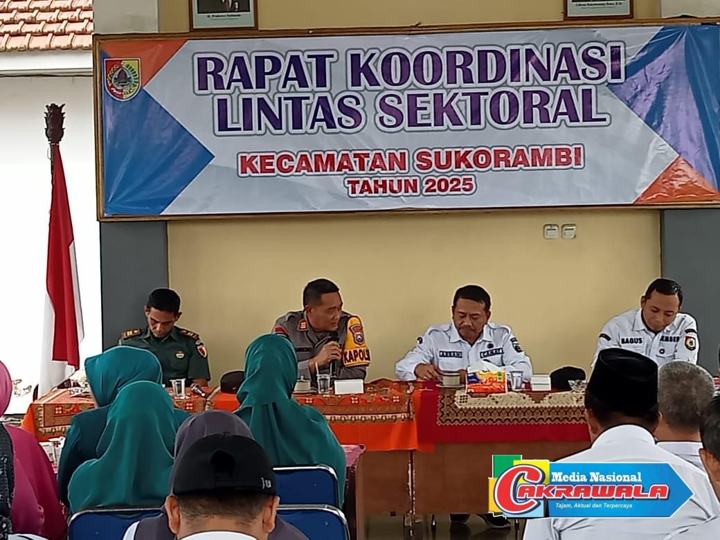 Jember,MN Cakrawala-Kegiatan rakor Lintas Sektor Kecamatan Sukorambi sekaligus perkenalan Kapolsek baru di Kantor Kecamatan Sukorambi, Rabu ( 22/1/2025).