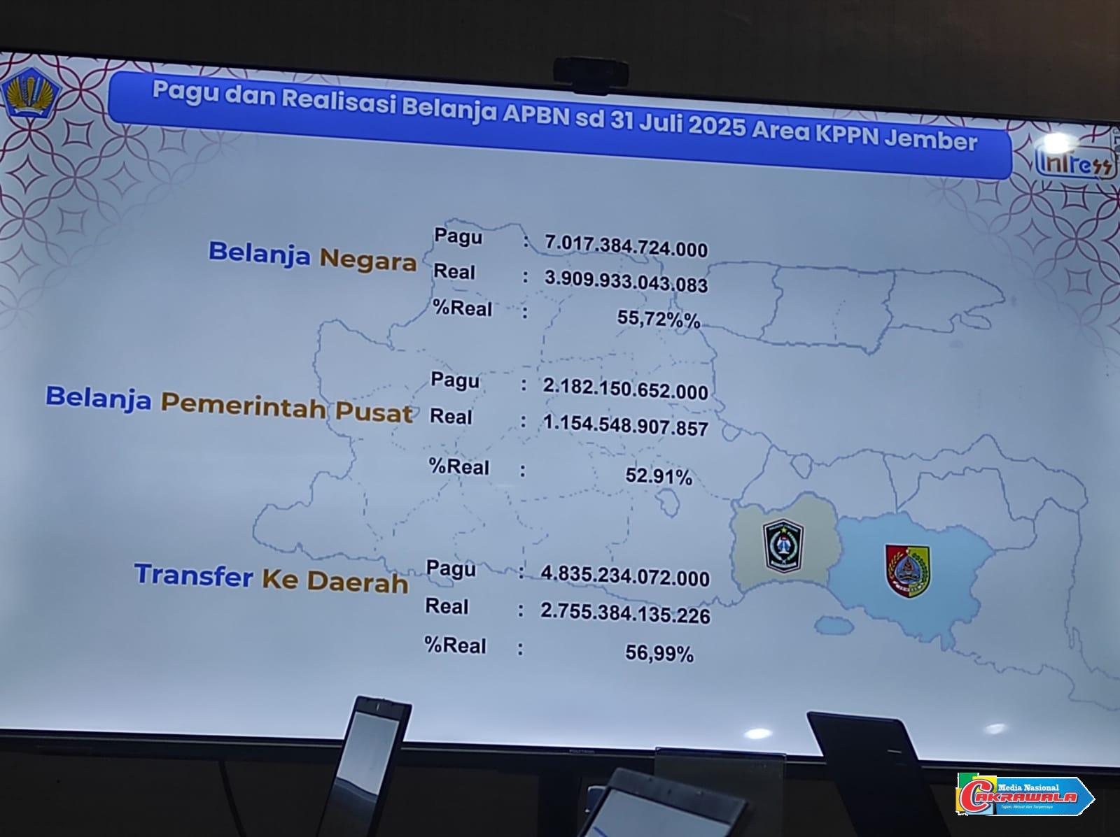 JEMBER, MN Cakrawala.com- Realisasi belanja APBN per 31 Juli 2025 di wilayah kerja KPPN Jember telah melebihi angka 50 persen.